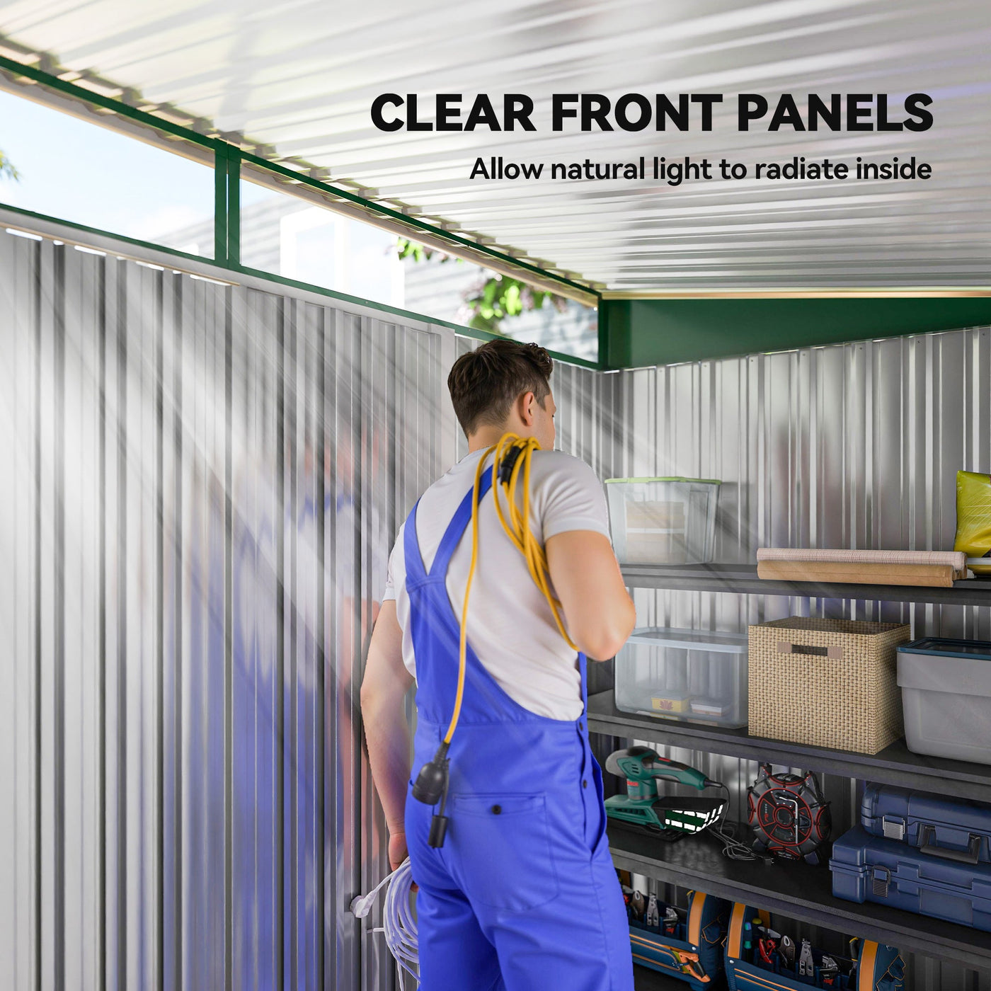 Outsunny 8.5 x 4ft Metal Shed with Lightsky Panels, Garden Storage Tool House with Double Doors for Garden, Patio and Lawn, Green - Green