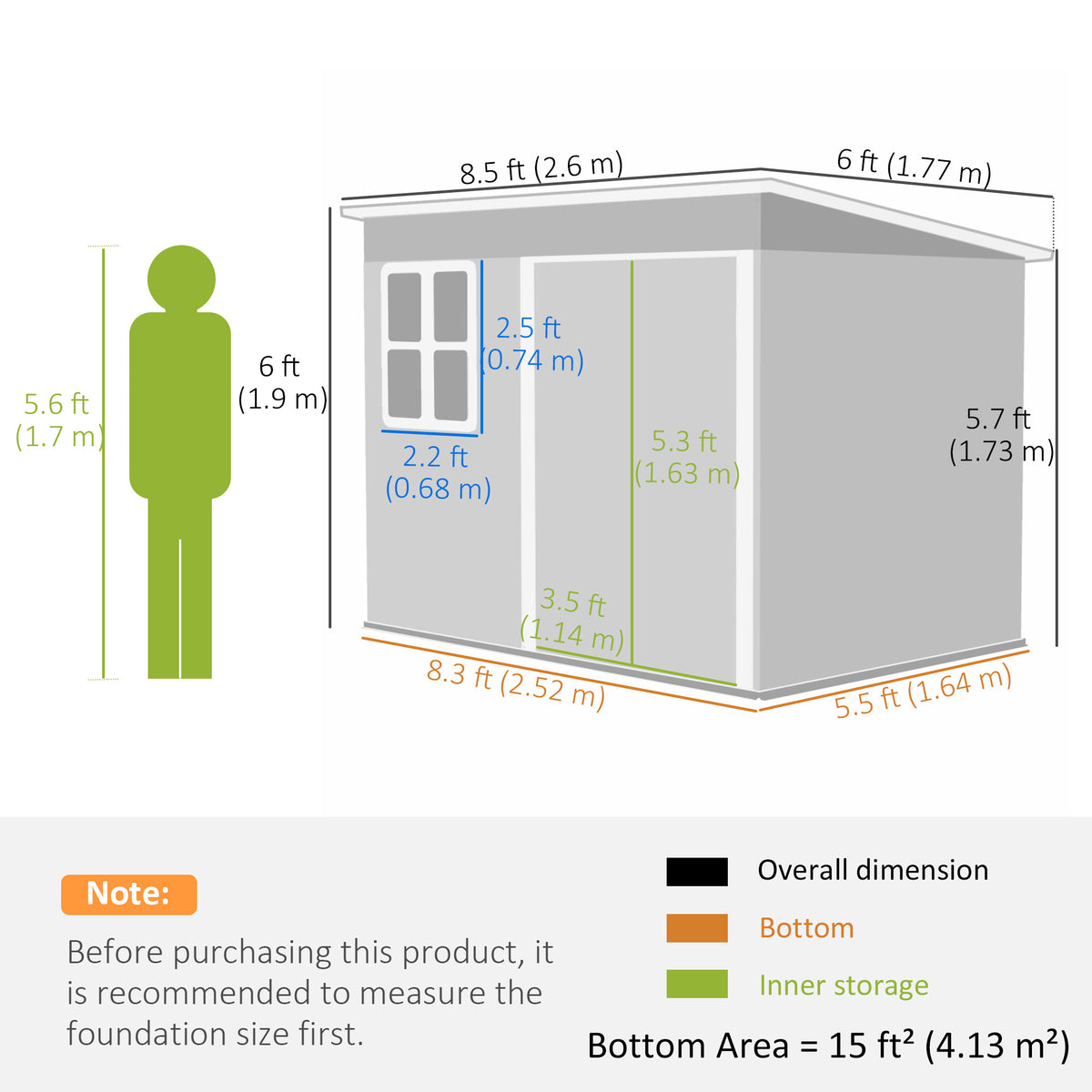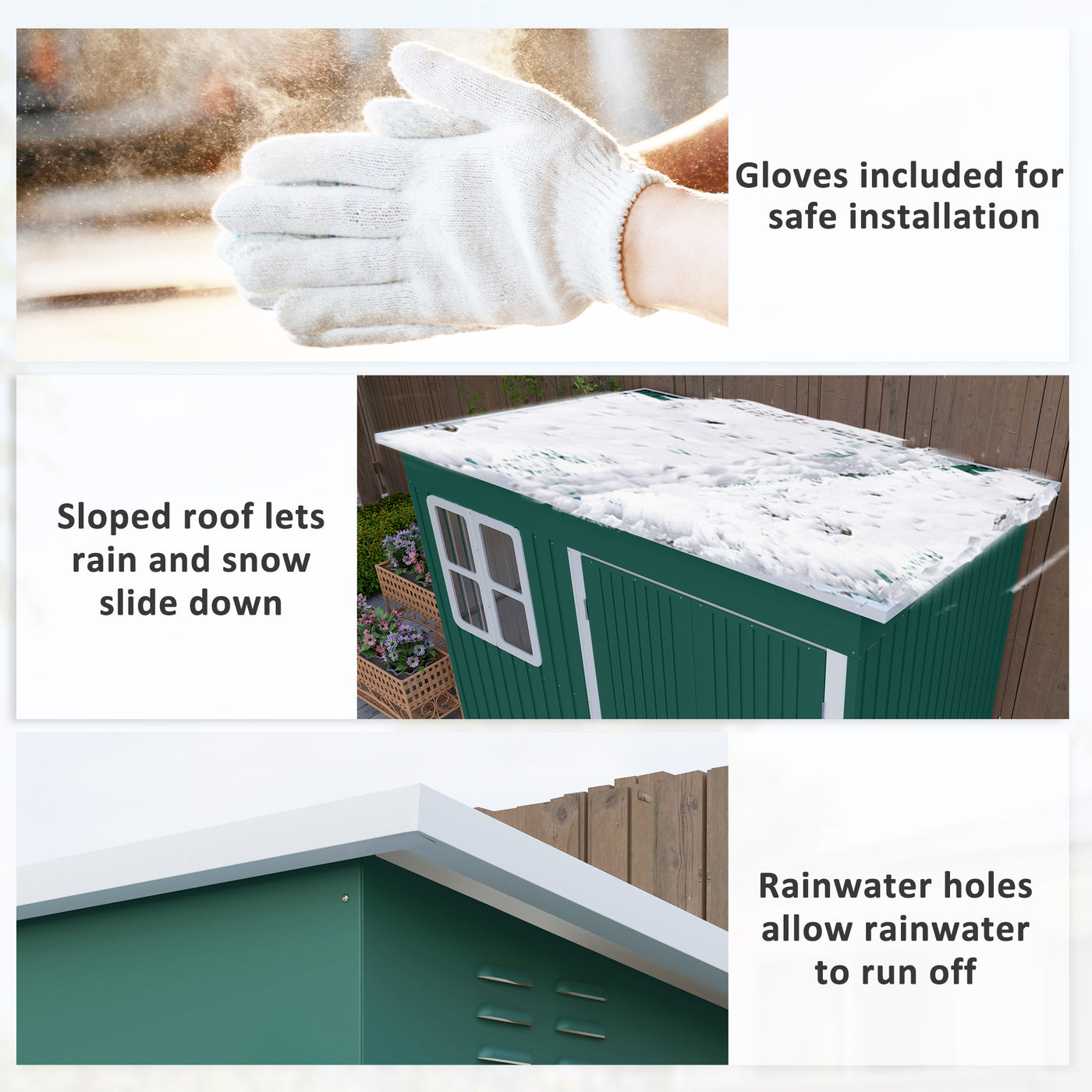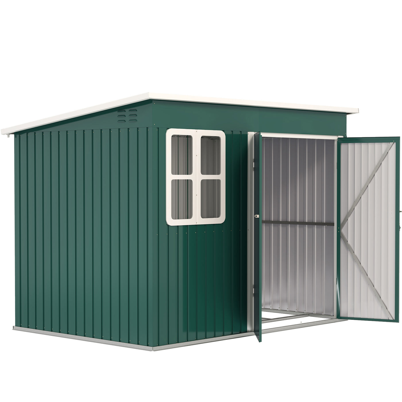 Outsunny 8.5 x 6ft Storage Shed Galvanised Steel Garden Shed, Metal Shed with Foundation Kit, Window, Lockable Wide Doors and Air Vents for Outdoor Patio, Green - Green