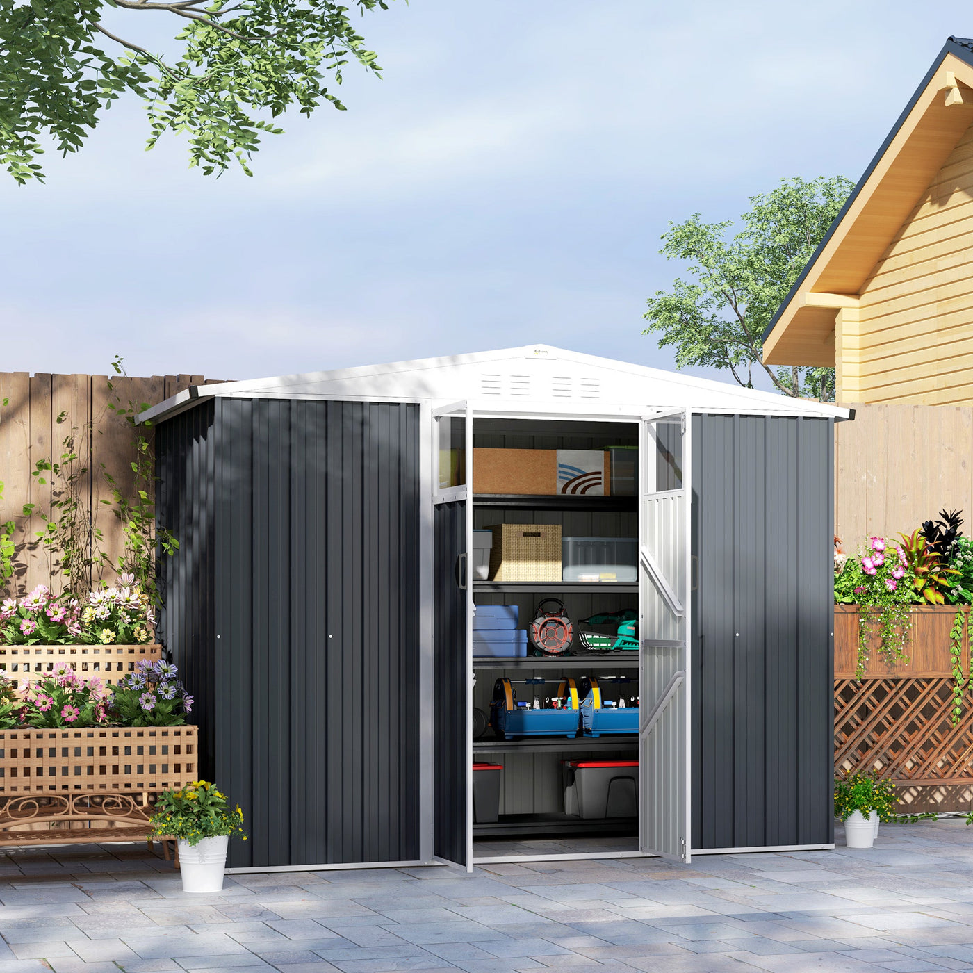 Discover the charm of tidiness with the Outsunny metal garden shed. Spaciously designed to house everything from bikes to garden tools, this garden shed features double doors for easy access and secure storage. Enjoy natural light with two transparent windows and keep the air fresh with four well-placed vents. Made from anti-UV, rust-resistant galvanised steel, it's the stylish haven for all your outdoor essentials.