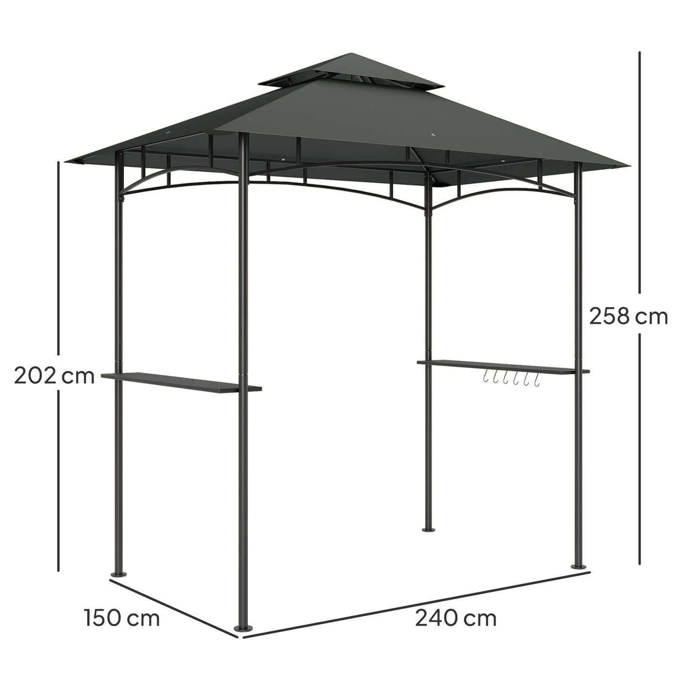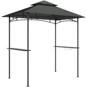 Outsunny 8' x 5' Grill Gazebo, Double Tiered BBQ Gazebo Shelter Canopy with LED Lights, 2 Side Shelves, Hooks, Dark Grey - Dark Grey