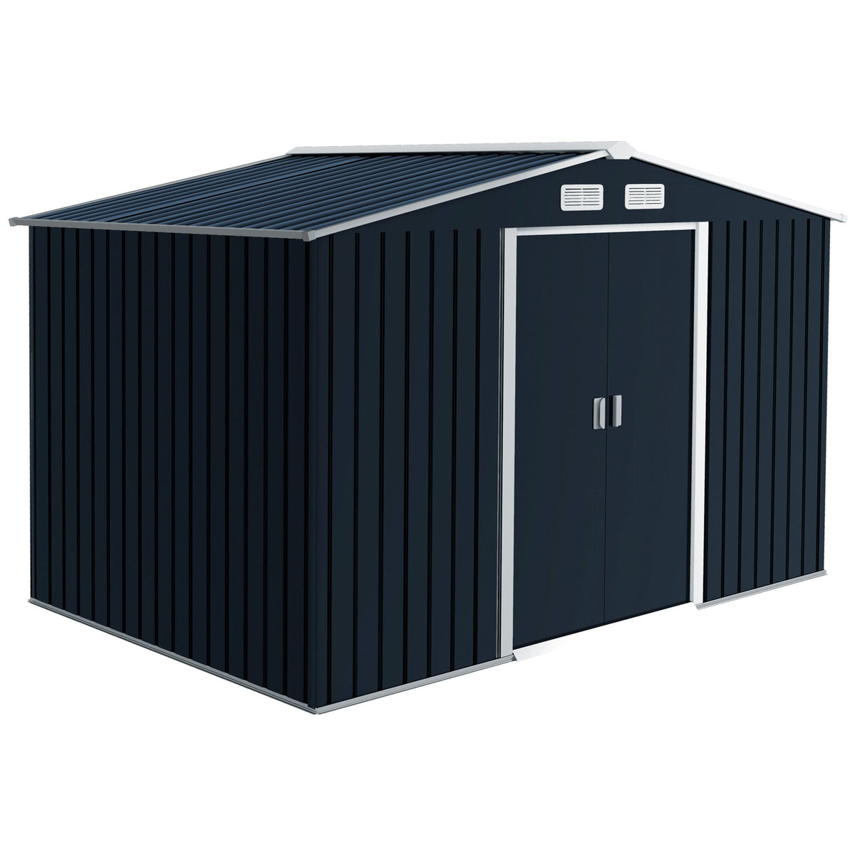 Outsunny 9 x 6ft Metal Bicycle Shed, Outdoor Storage Tool House with Ventilation Slots, Foundation Kit and Lockable Double Doors, Dark Grey - Dark Grey