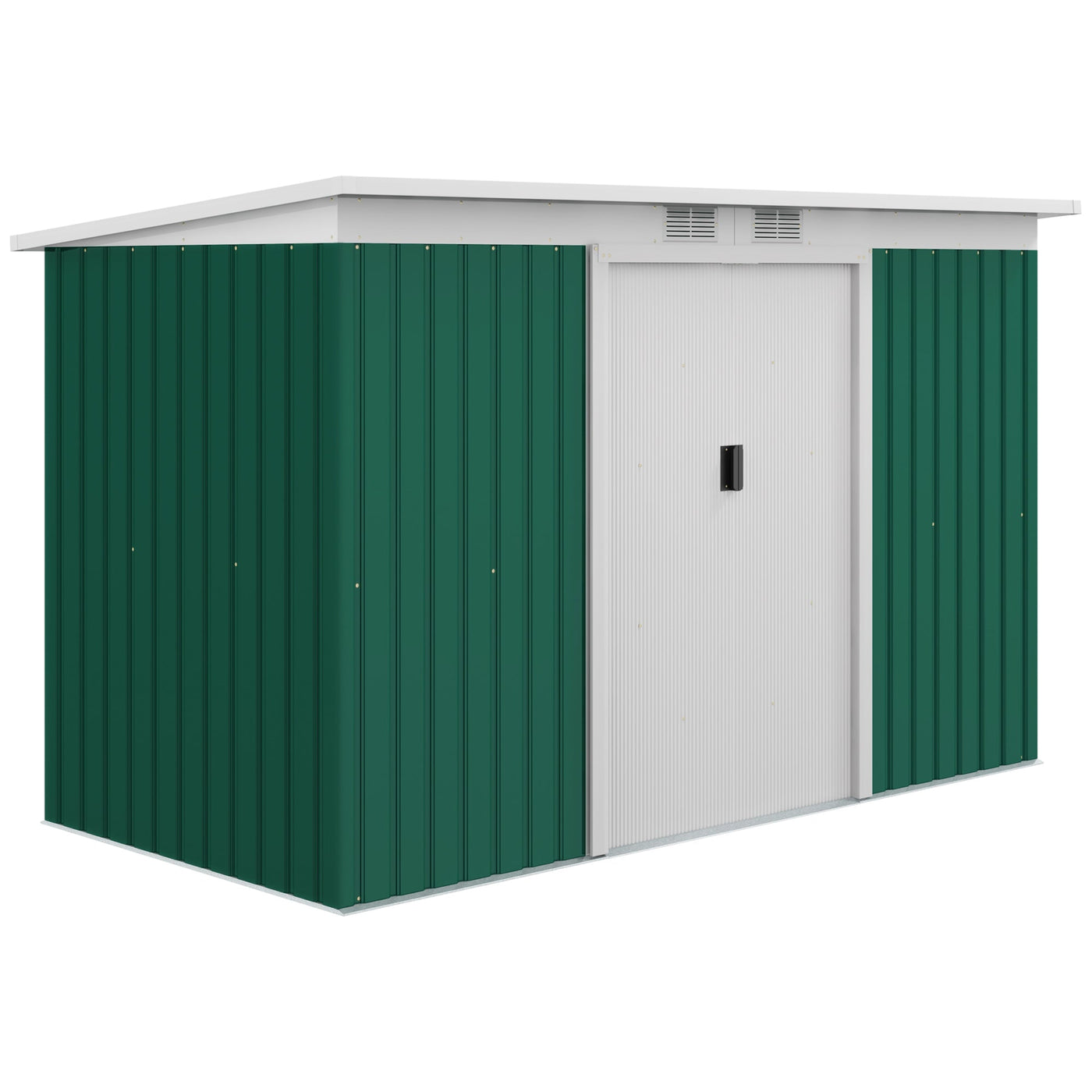 Outsunny 9ft x 4ft Metal Garden Shed, Outdoor Tool House with Foundation Kit, Ventilations and Double Doors, Deep Green - Deep Green
