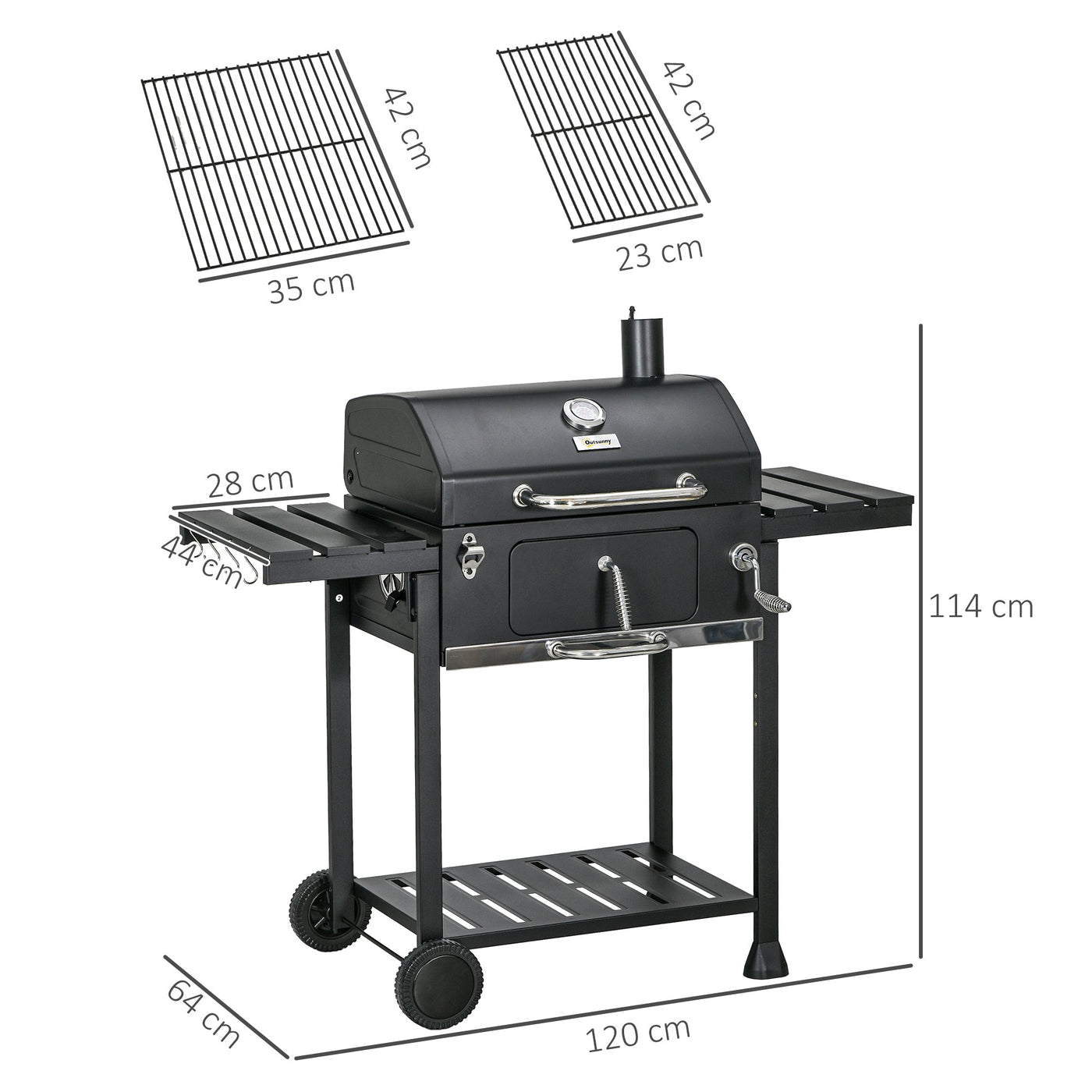 Outsunny Adjustable Charcoal Pan BBQ, with Thermometer and Warming Rack - Black