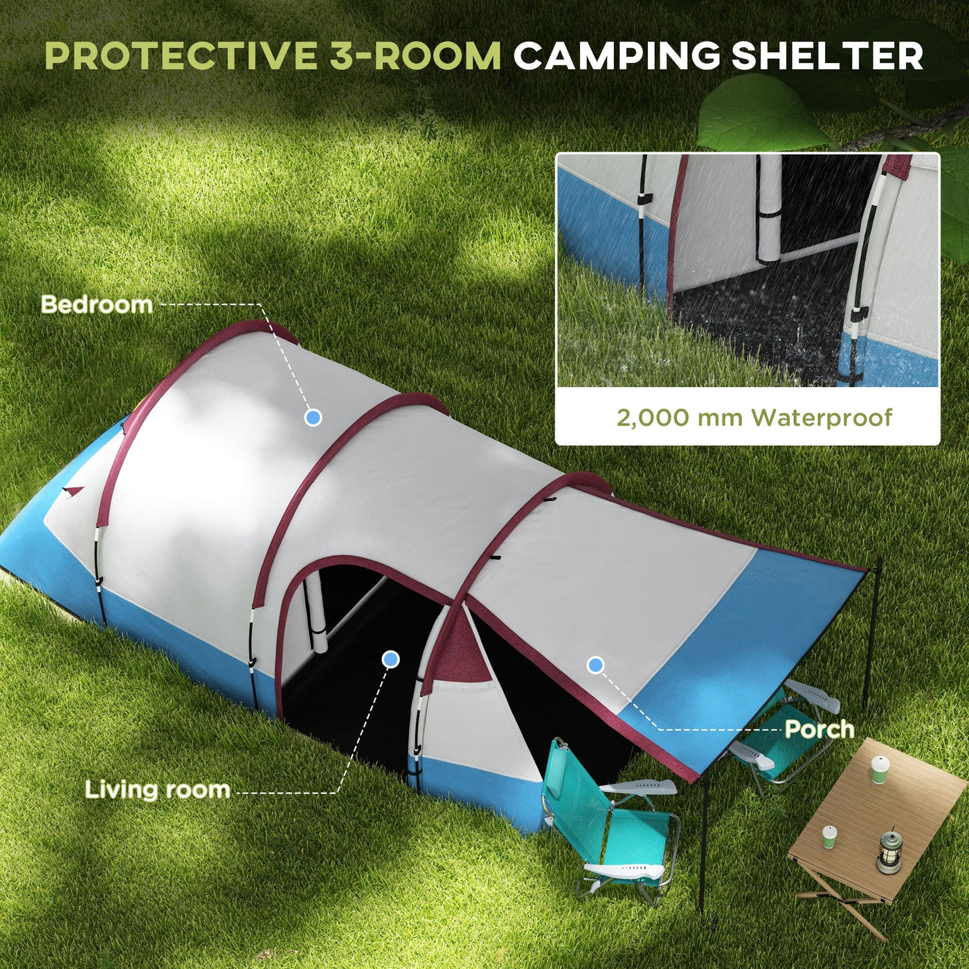 Outsunny Camping Tent, Large Tunnel Tent with Bedroom and Living Area, 2000mm Waterproof, Portable with Bag for 2-3 Man, Red - Red