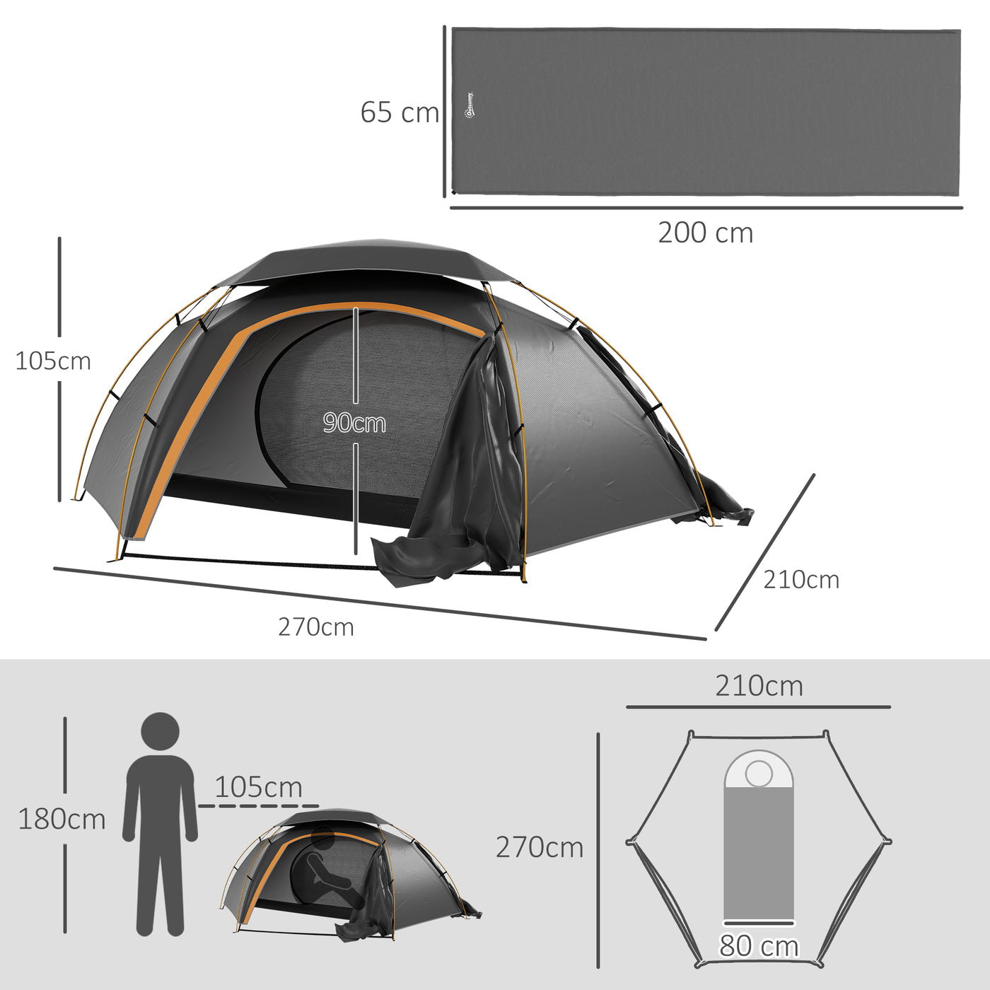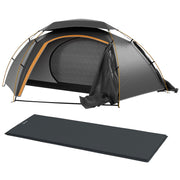 Outsunny Camping Tent with Self Inflatable Mattress, 1 Person Dome Tent with Removable Rainfly and Aluminium Frame, 2000mm Waterproof, Portable with Bags, for Fishing Hiking, Dark Grey/Grey - Dark Grey, Grey