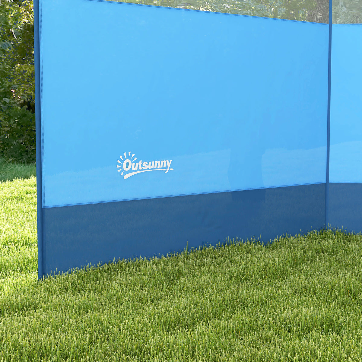 Outsunny Camping Windbreaker with Clear Windows, Carry Bag and Steel Poles, for Beach Caravan Campervan, 440 x 140cm, Blue - Blue
