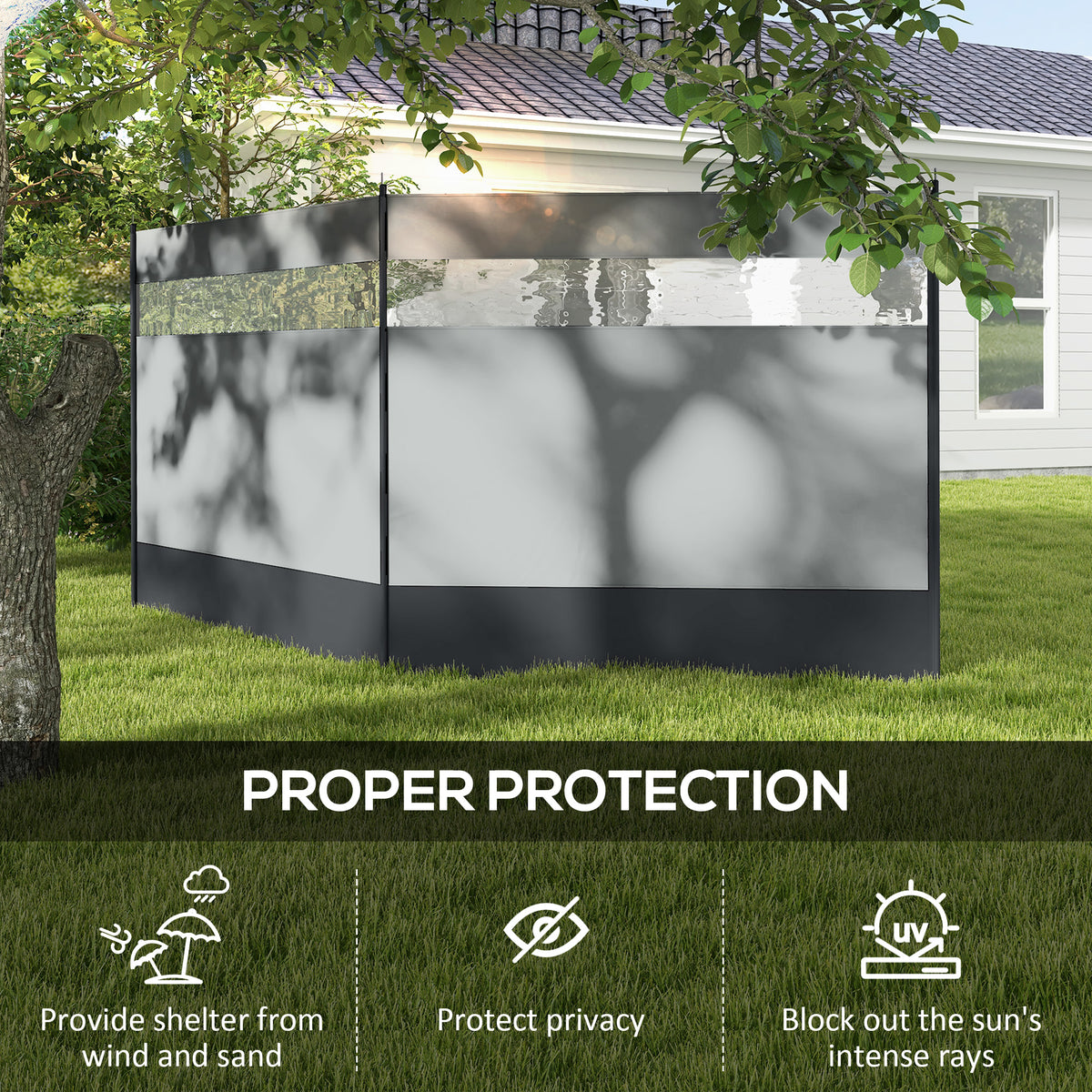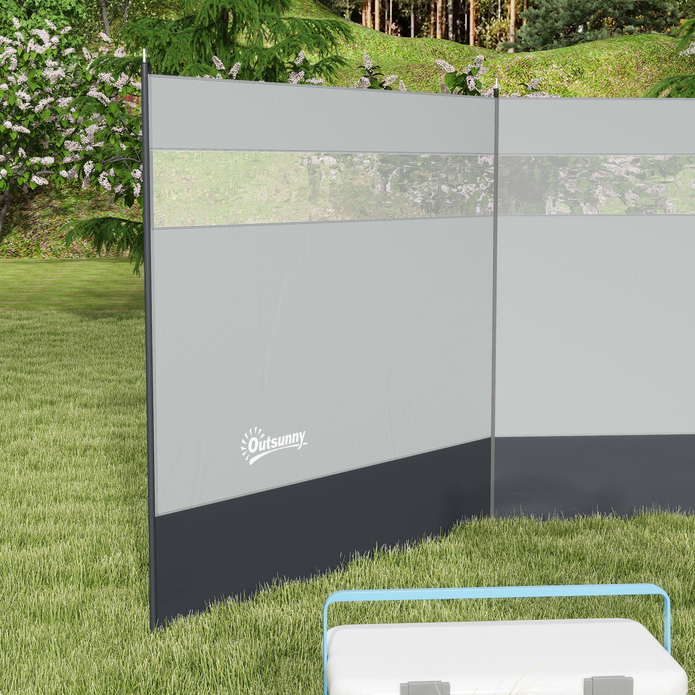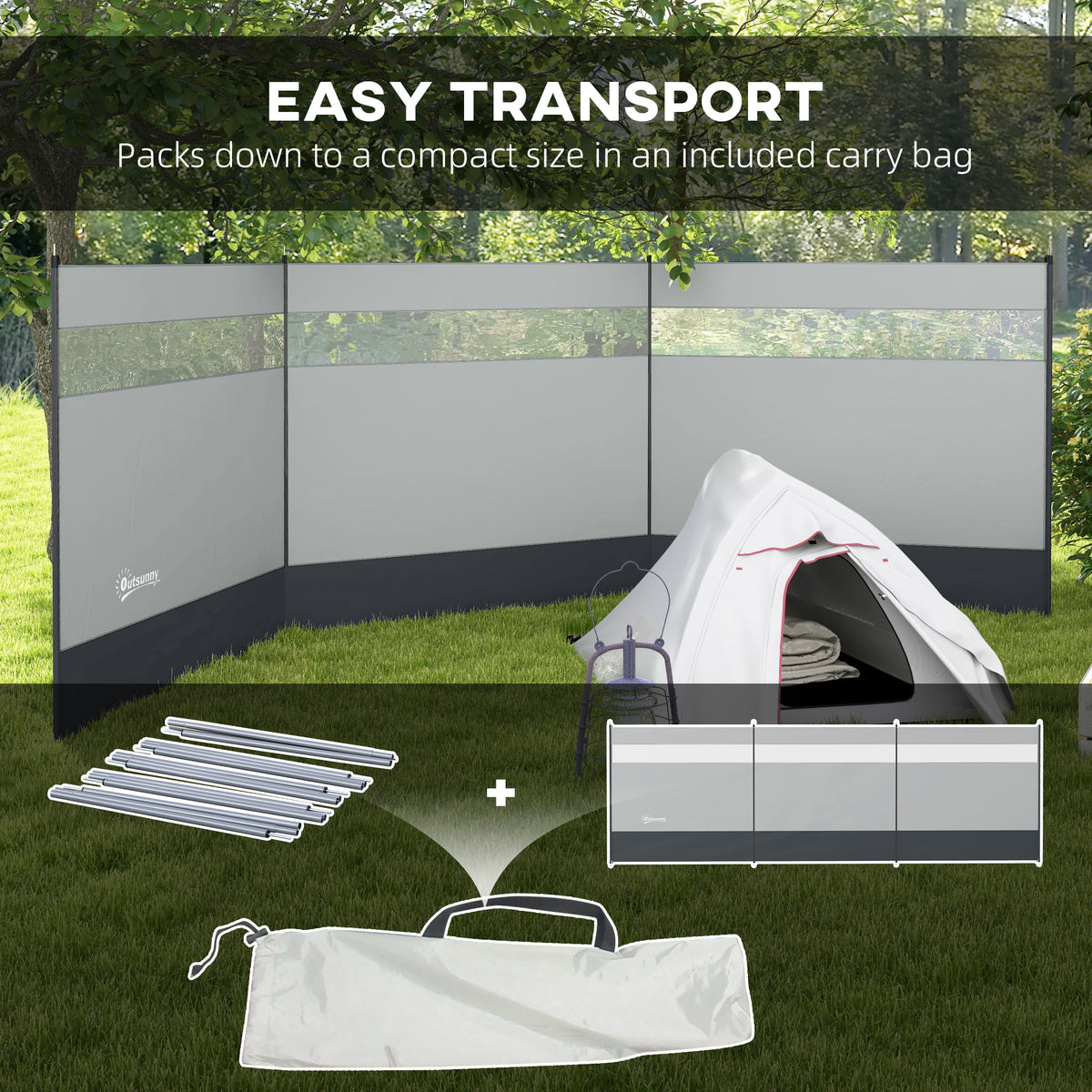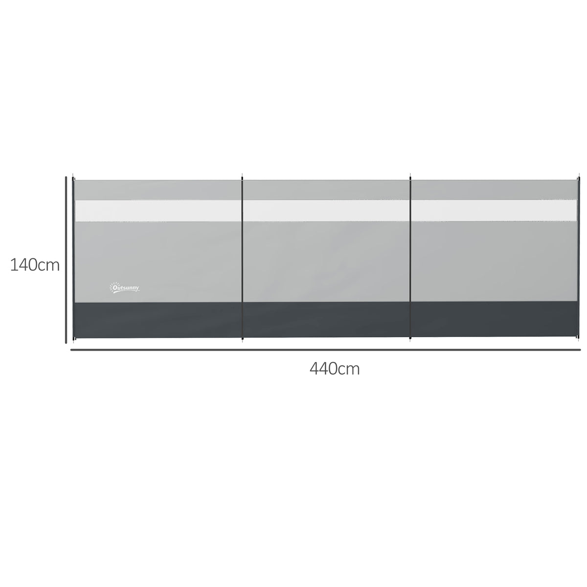 Outsunny Camping Windbreaker with Clear Windows, Carry Bag and Steel Poles, for Beach Caravan Campervan, 440 x 140cm, Grey - Grey