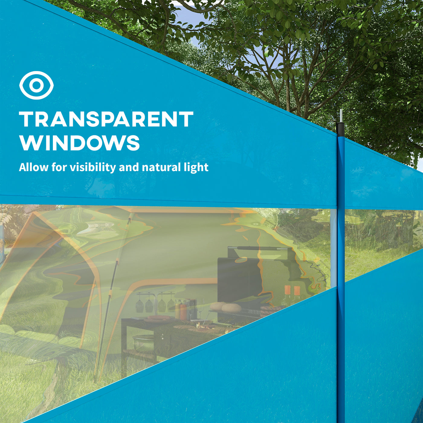 Outsunny Camping Windbreaker with Clear Windows, Carry Bag and Steel Poles, for Beach Caravan Campervan, 725 x 140cm, Blue - Blue