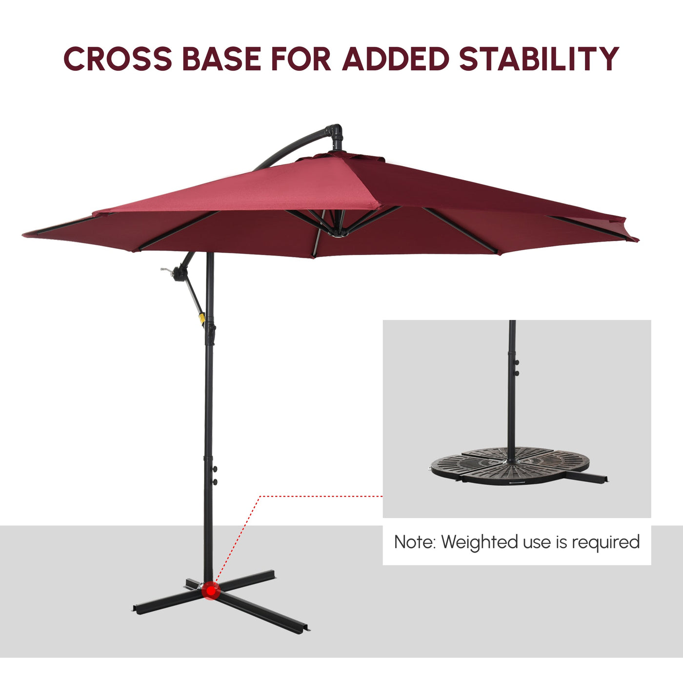 Outsunny Cantilever Umbrella Parasol Hanging Banana Steel Dark Green 3M Patio Wine Red - Wine Red