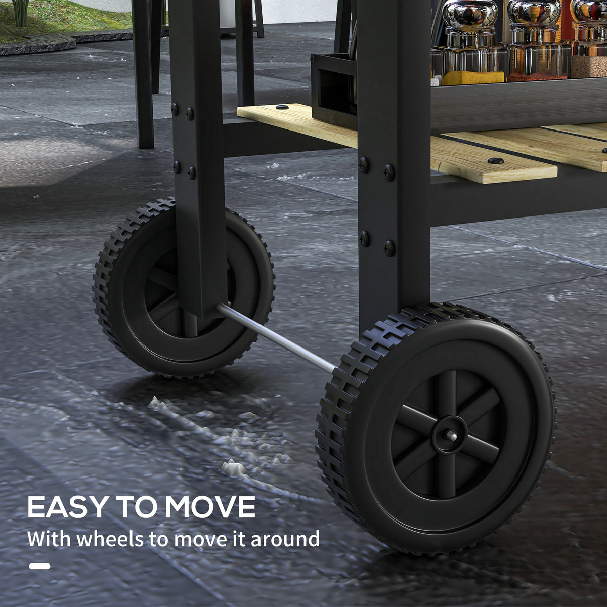 Outsunny Charcoal BBQ Grill, Barbecue Trolley with Double Adjustable Grill, Side Table, Storage Shelf and Wheels for Outdoor Garden Party Cooking, Black - Black