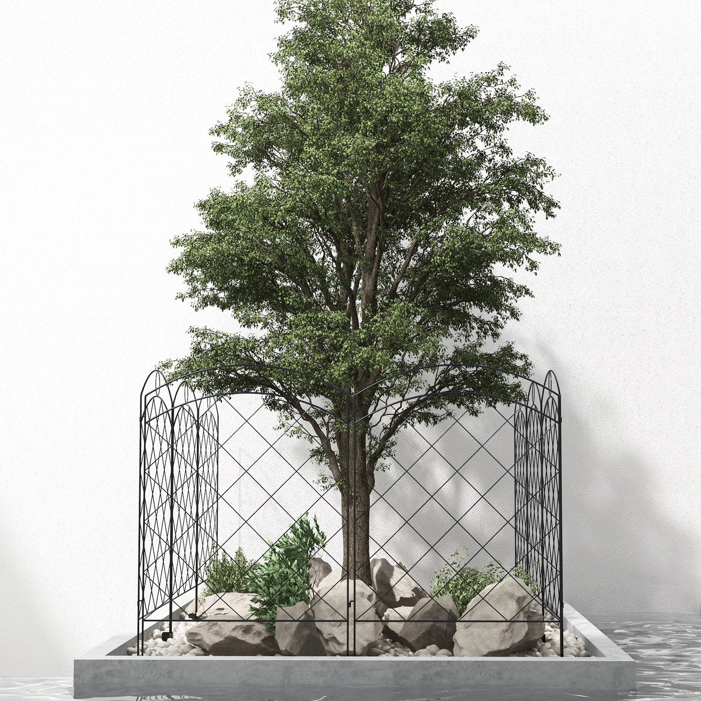 A beautiful and practical fence which can easily be shaped to suit you: this Outsunny piece is a chic entrance to your home! 3.5m long, each panel can be flexed to a different position, making it great for obscure shaped areas. Made from steel for a strong structure, the powder coating offers extra protection and strength. The inner gridding and top circles create a pretty look.