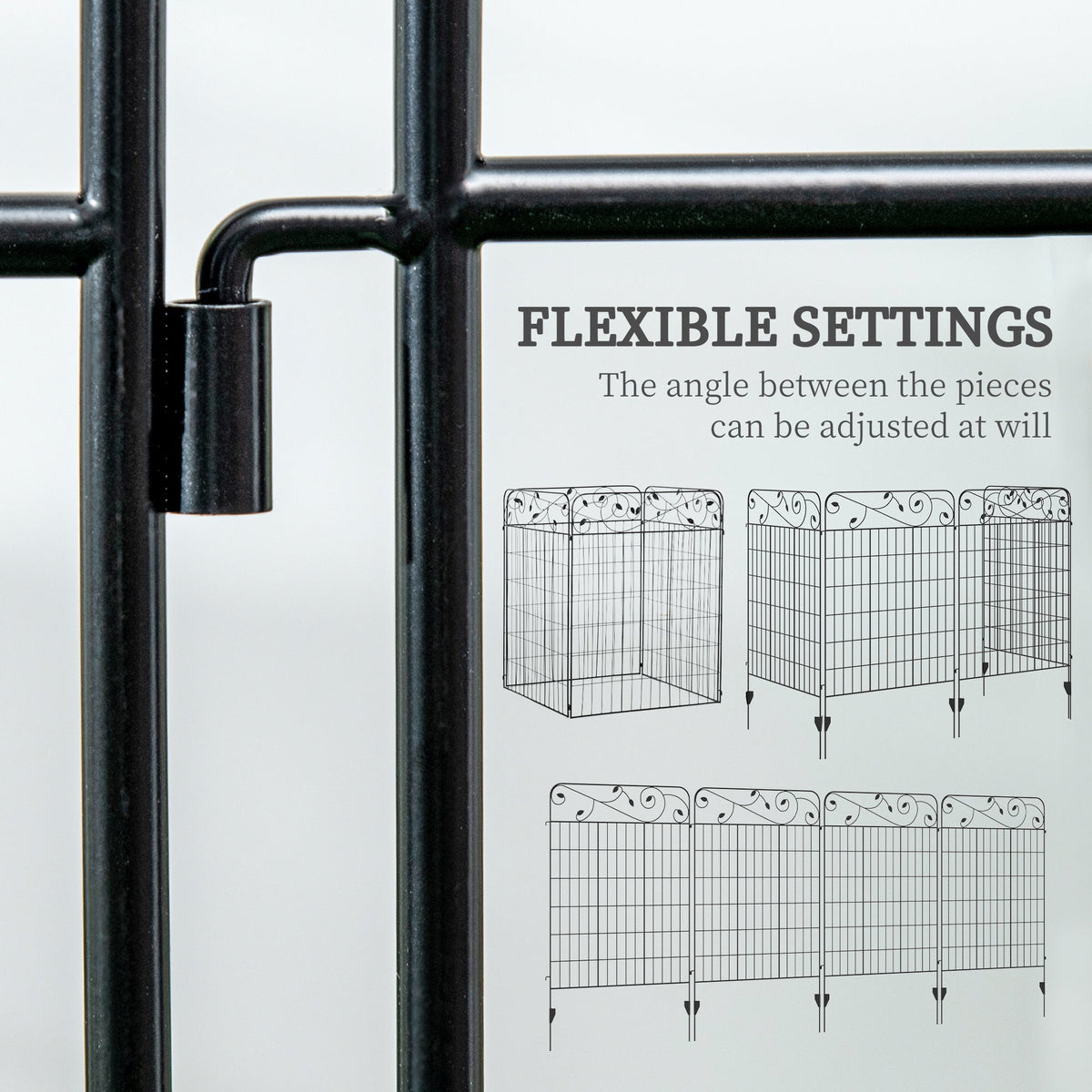 A beautiful and practical fence which can easily be shaped to suit you: this Outsunny piece is the perfect entrance to your home! 3.5m long, each panel can be flexed to a different position, making it great for obscure shaped areas. Made from metal for a strong structure, the powder coating offers extra protection and strength. The inner gridding and top floral swirls create a pretty look.