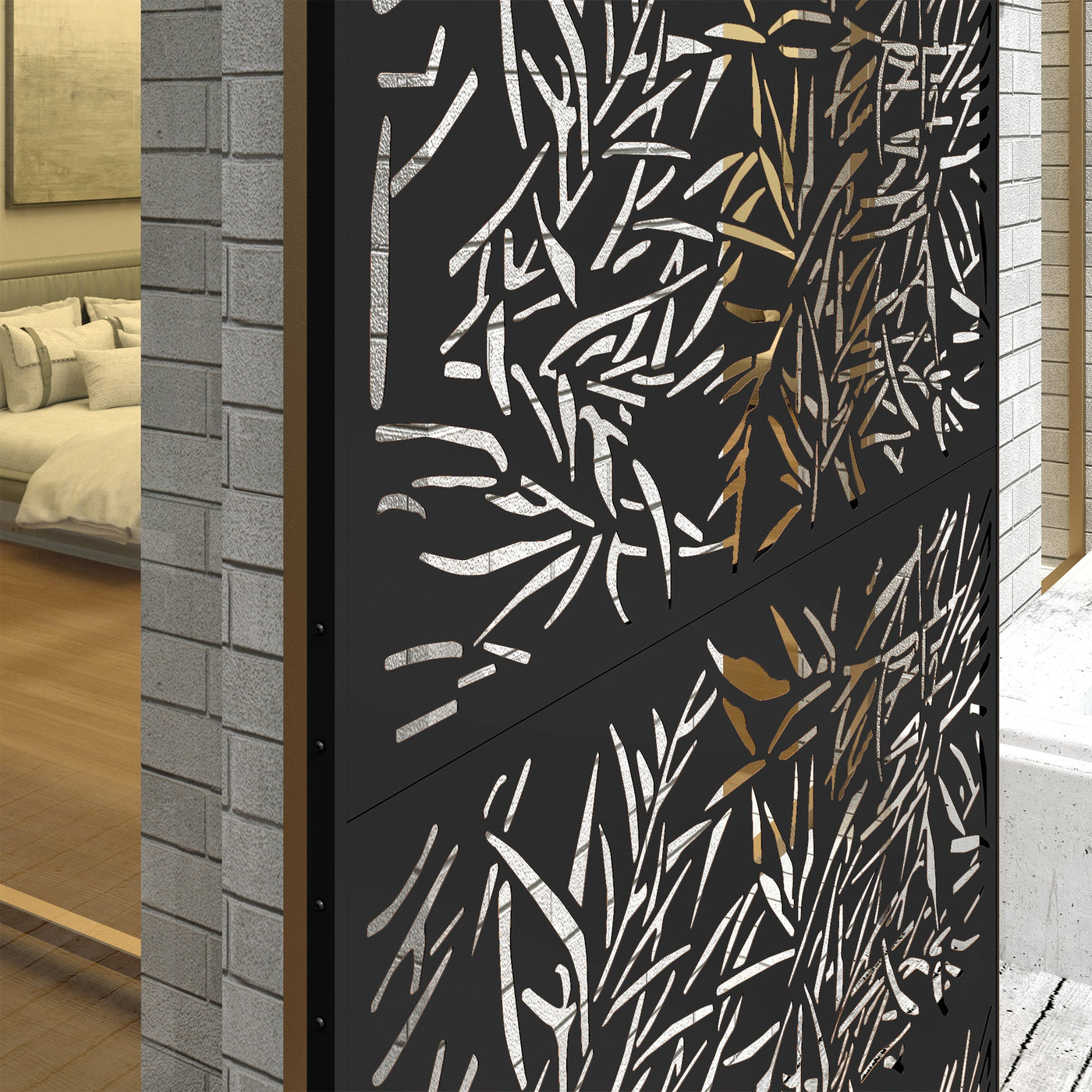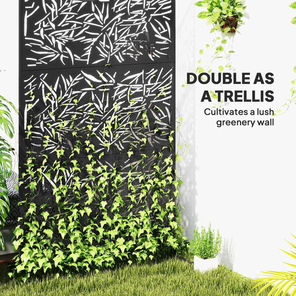Outsunny Decorative Garden Privacy Screen with Stand, 6.5FT Freestanding Metal Outdoor Divider, Decorative Privacy Panel with Expansion Screws for Garden Pool Hot Tub, Bamboo Style, Black - Black