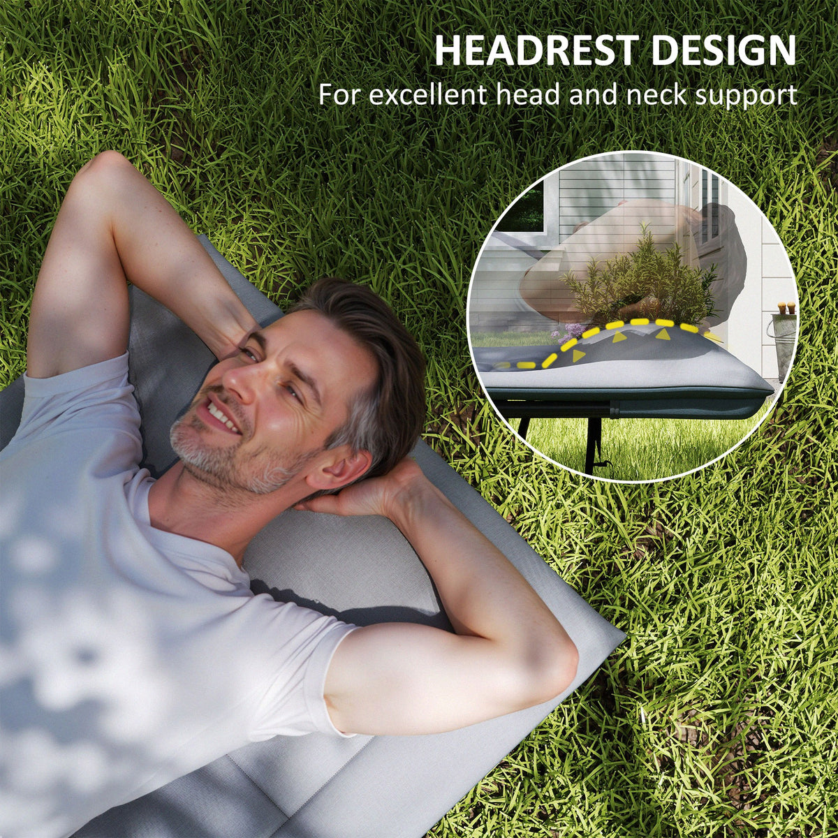 Drift into dreamland with the Outsunny Camping Cot! Boasting a cushion fused to the frame for hassle-free comfort and thicker, flat square metal tubes for enhanced stability, this folding camp bed supports up to 150 kg. Enjoy the splash-resistant, breathable fabric while keeping essentials close in the side pocket. Great for any camping enthusiast looking for a cosy night's sleep under the stars.