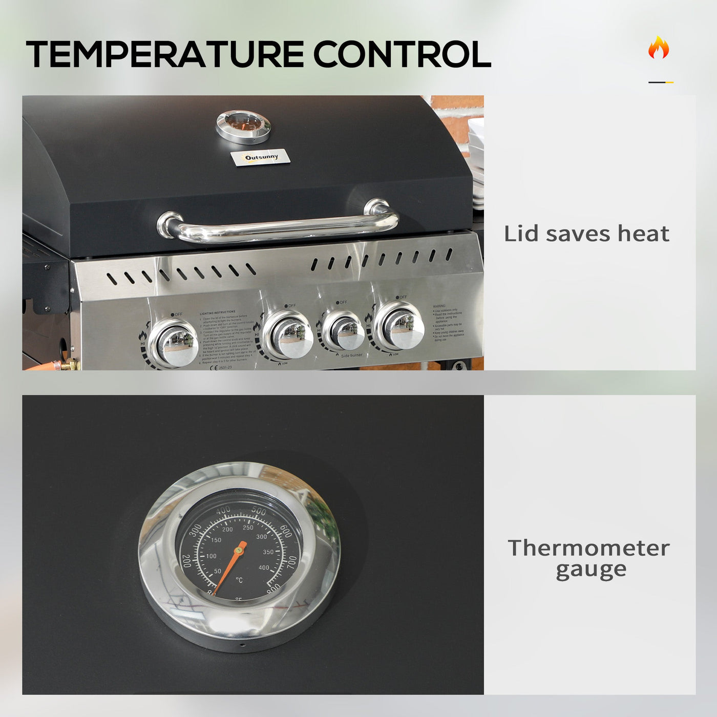 - Grill lid for cooking low-and-slow and creating smoky flavours. On-lid thermometer to control temperature