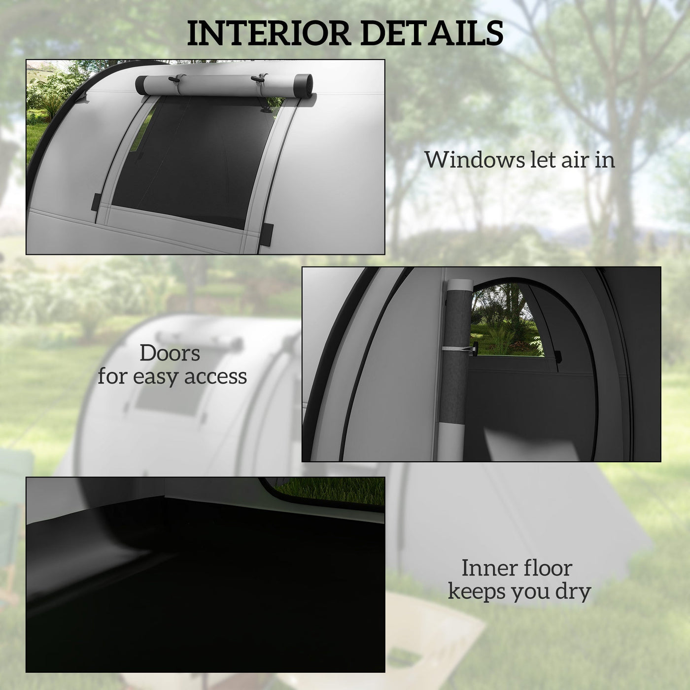 Outsunny Four Man Duo Room Tunnel Tent, with Accessories - Grey - Grey