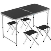 Unfold and enjoy company outdoors - camping, picnics, festivals and more with this Outsunny folding table and chairs set. All pieces made from aluminium means strong, supportive pieces; suitable for outdoor use. The table features a 3cm centre hole to hold a parasol umbrella for safe shade. When done, all you need to do is fold the pieces - easy and carry and store.