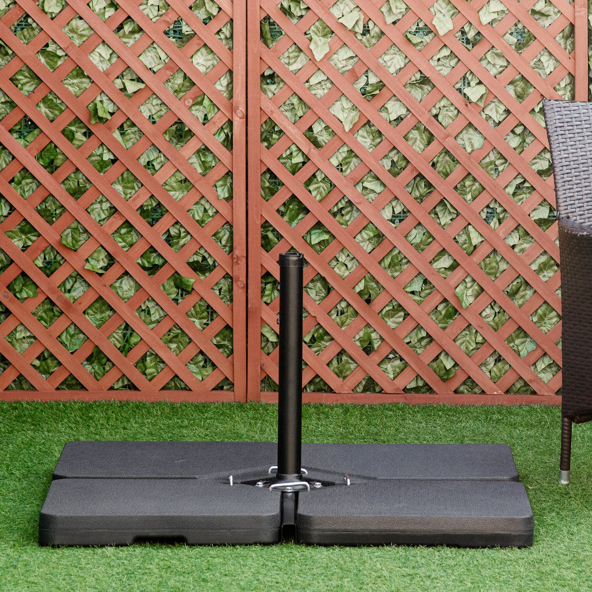 Ensure your parasol is always held firmly in place with these Outsunny weights - suitable our Cantilever and banana parasols. Made from HDPE plastic for year-round use, the four pieces fit together easily with the connecting hooks. Can be filled with either water, sand - or both mixed - to increase the weight easily. Compete with a port and protective cap to fill/empty easily.