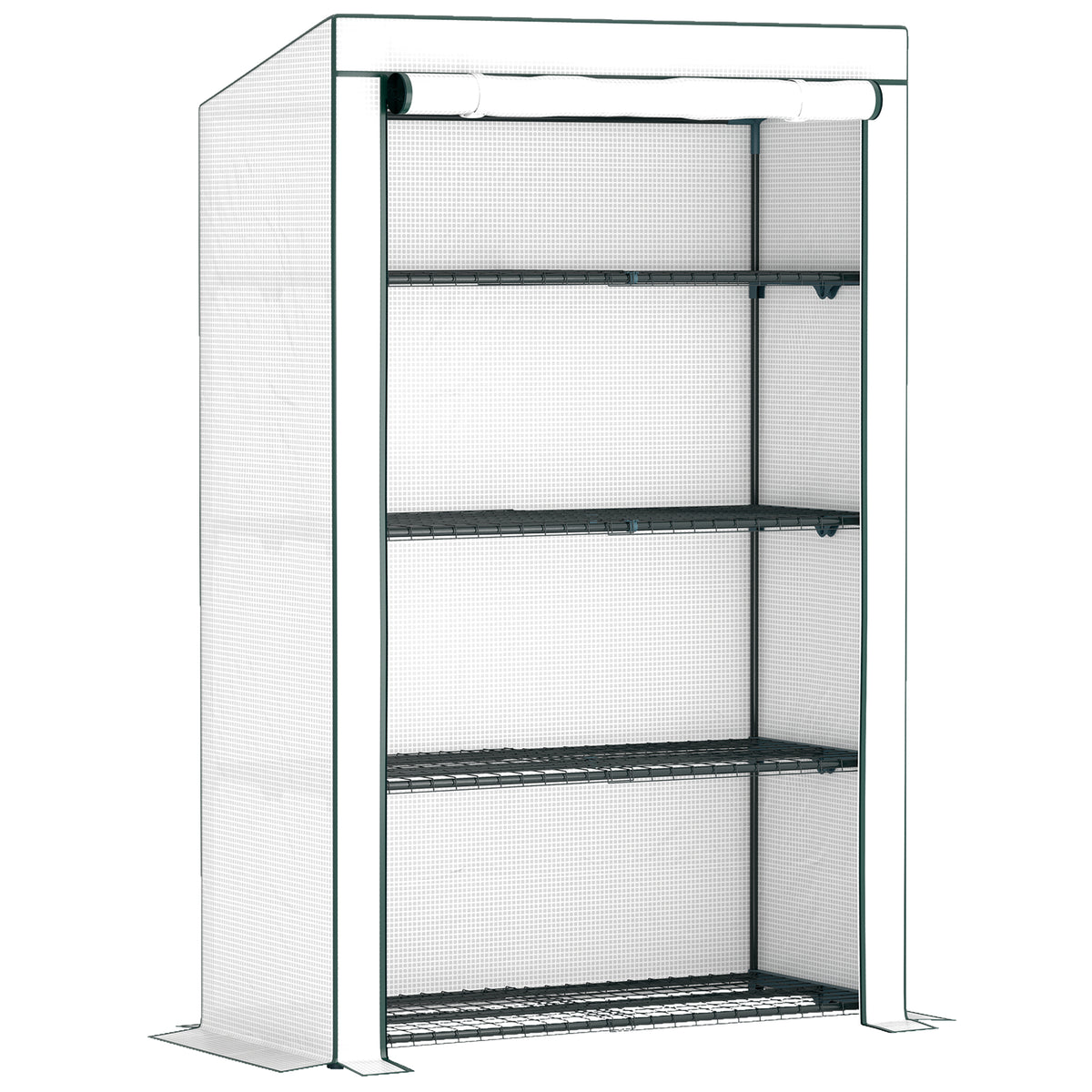 This Outsunny four-tier greenhouse offers lots of space for flower pots, seed trays and more; the inside is protected with the 140g/m² plastic cover - shields plants from outer weather, whilst allowing nourishing sunlight through. Complete with a roll-up zipped for easy access and fresh air, whenever you want.