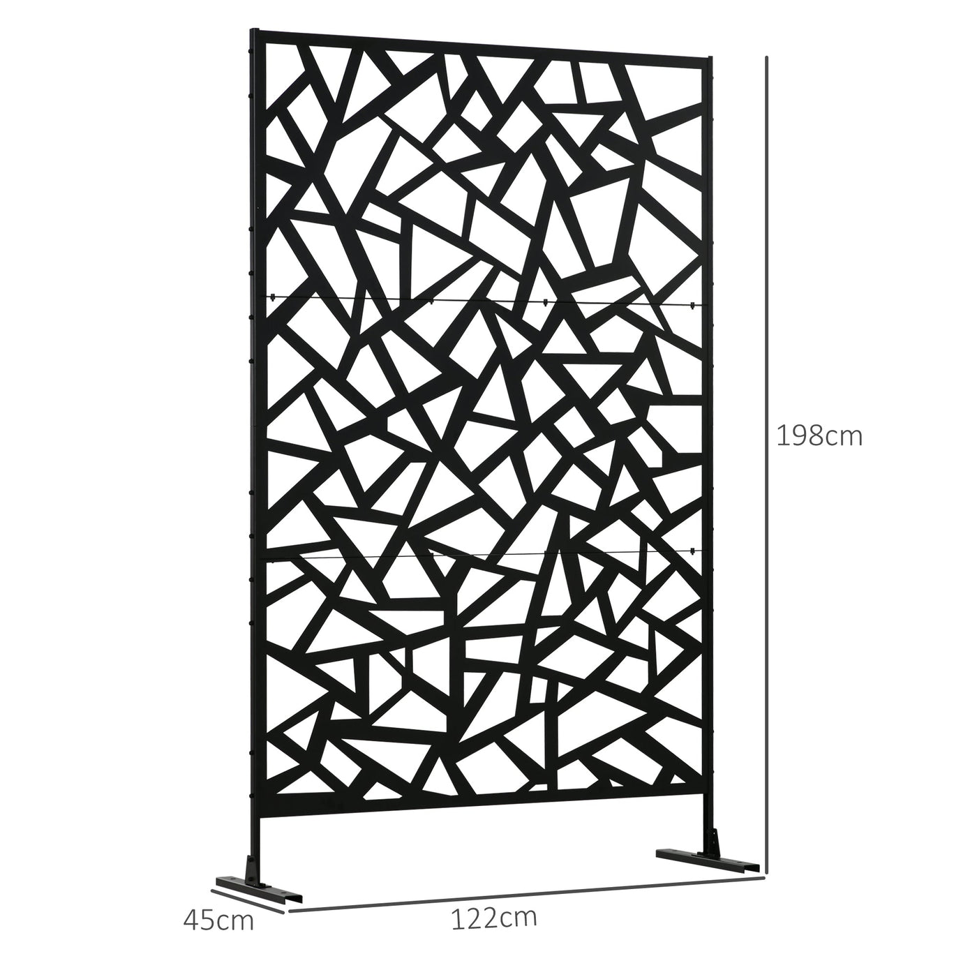 A dividing screen for patio, garden, outdoor - and even indoor spaces. This Outsunny 198 x 122cm piece will bring a pretty and decorative touch to your space, whilst creating a private section whenever you require it. It's made from steel for strength, crafted into a cut-out design for a beautiful look which fits in effortlessly with your garden surroundings. Comes complete with two long legs for balance.