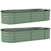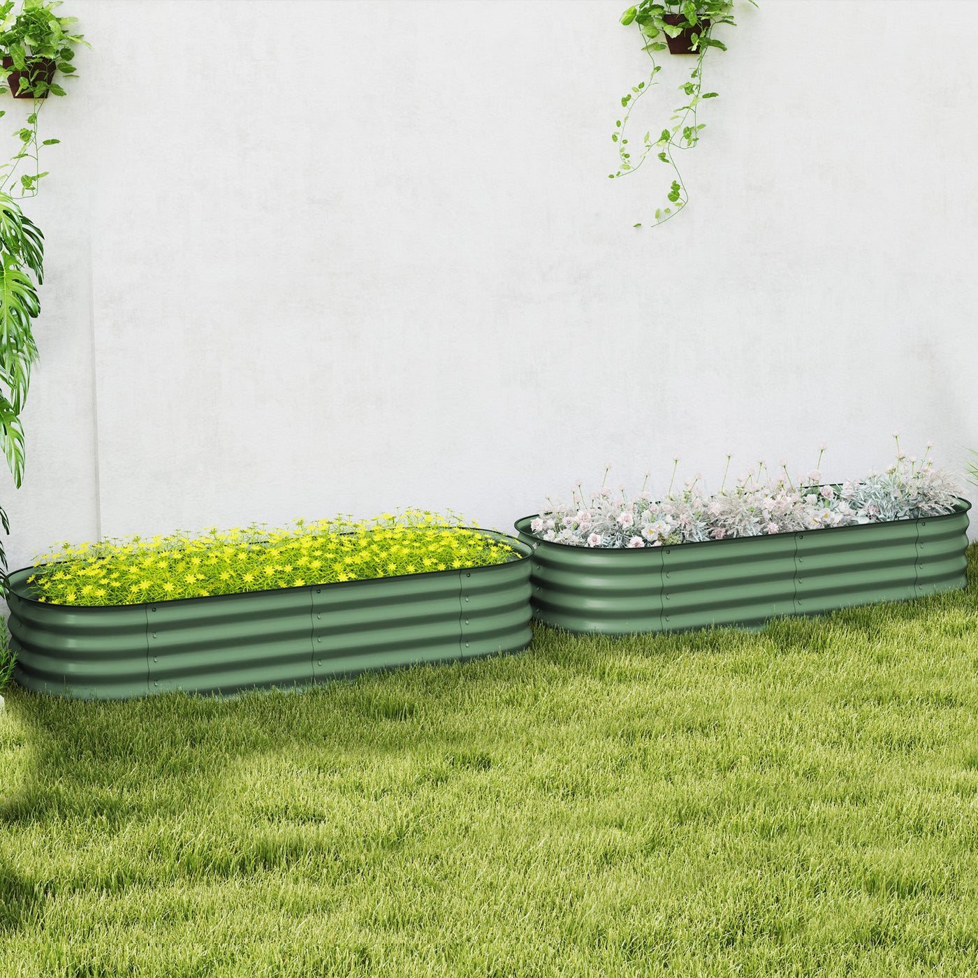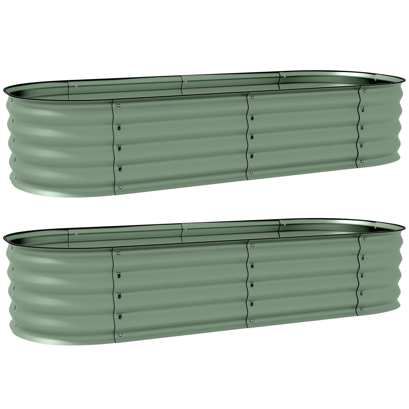Outsunny Galvanised Raised Garden Bed, Metal Planter Box with Safety Edging, for Flowers, Herbs, Succulents, Pack of 2, Green - Green