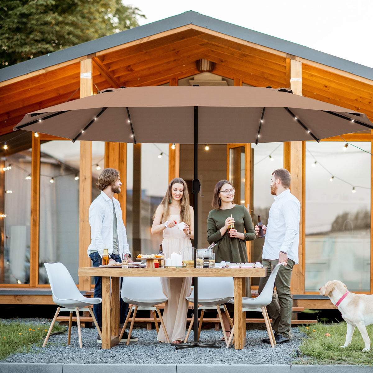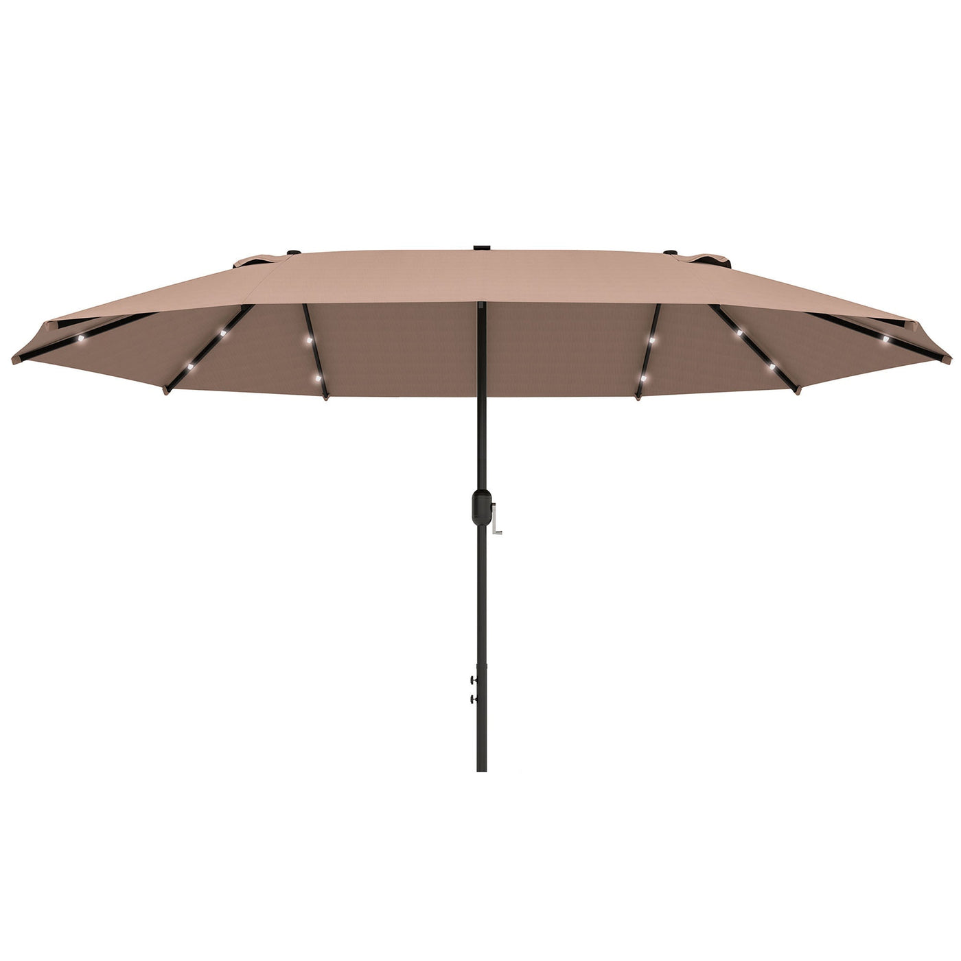 Outsunny Garden Parasol 4.4m Double-Sided Sun Umbrella Patio Parasol LED Solar Lights Khaki - Khaki