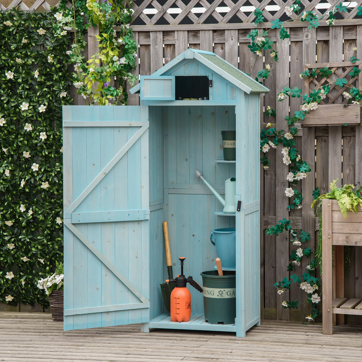Outsunny Garden Shed Vertical Utility 3 Shelves Shed Wood Outdoor Garden Tool Storage Unit Storage Cabinet, 77 x 54.2 x 179cm - Blue - Blue