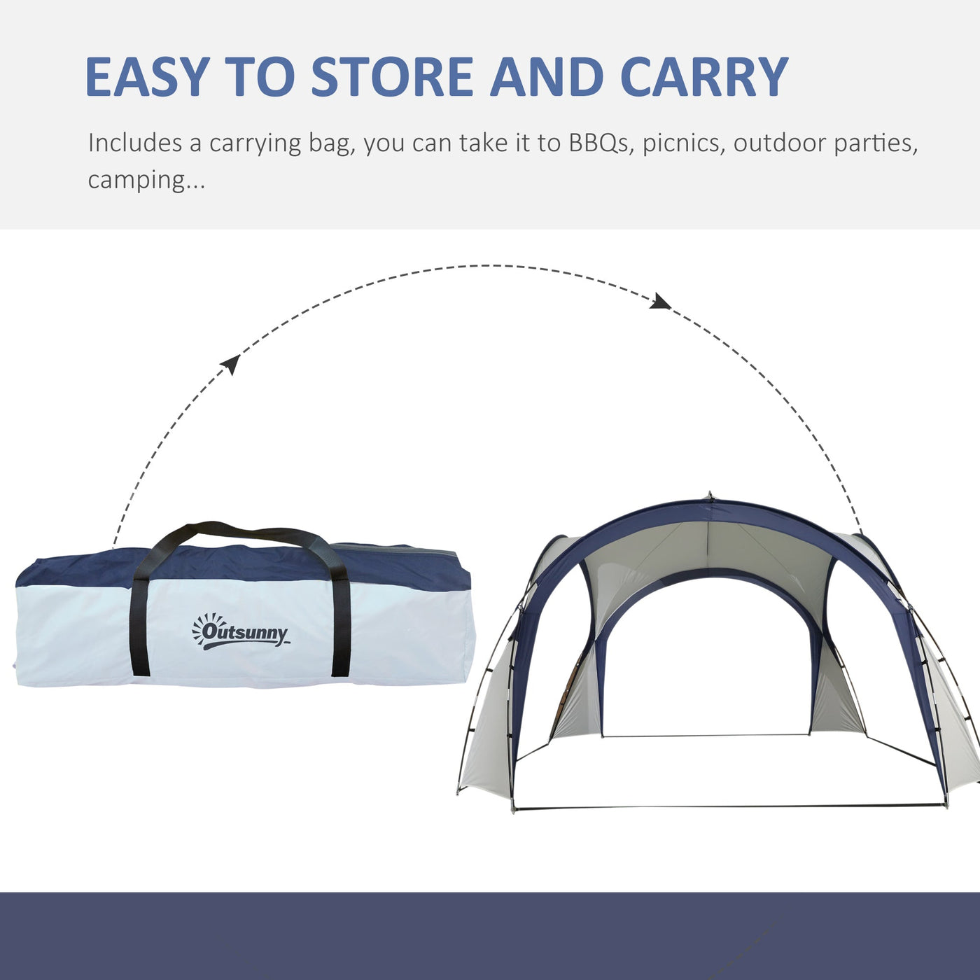 Enjoy the outdoors all year round with this dome shaped gazebo from Outsunny. 3.5 x 3.5m size is spacious enough to fit plenty of friends and family under, with the open side designs allowing extra space to spill out if needed, as well as providing plenty of air circulation all day and night long. Set comes with 12 ground pegs and four guy ropes to hold it firmly into the ground. You can take it in the included bag to BBQs, picnics, outdoor events and more.