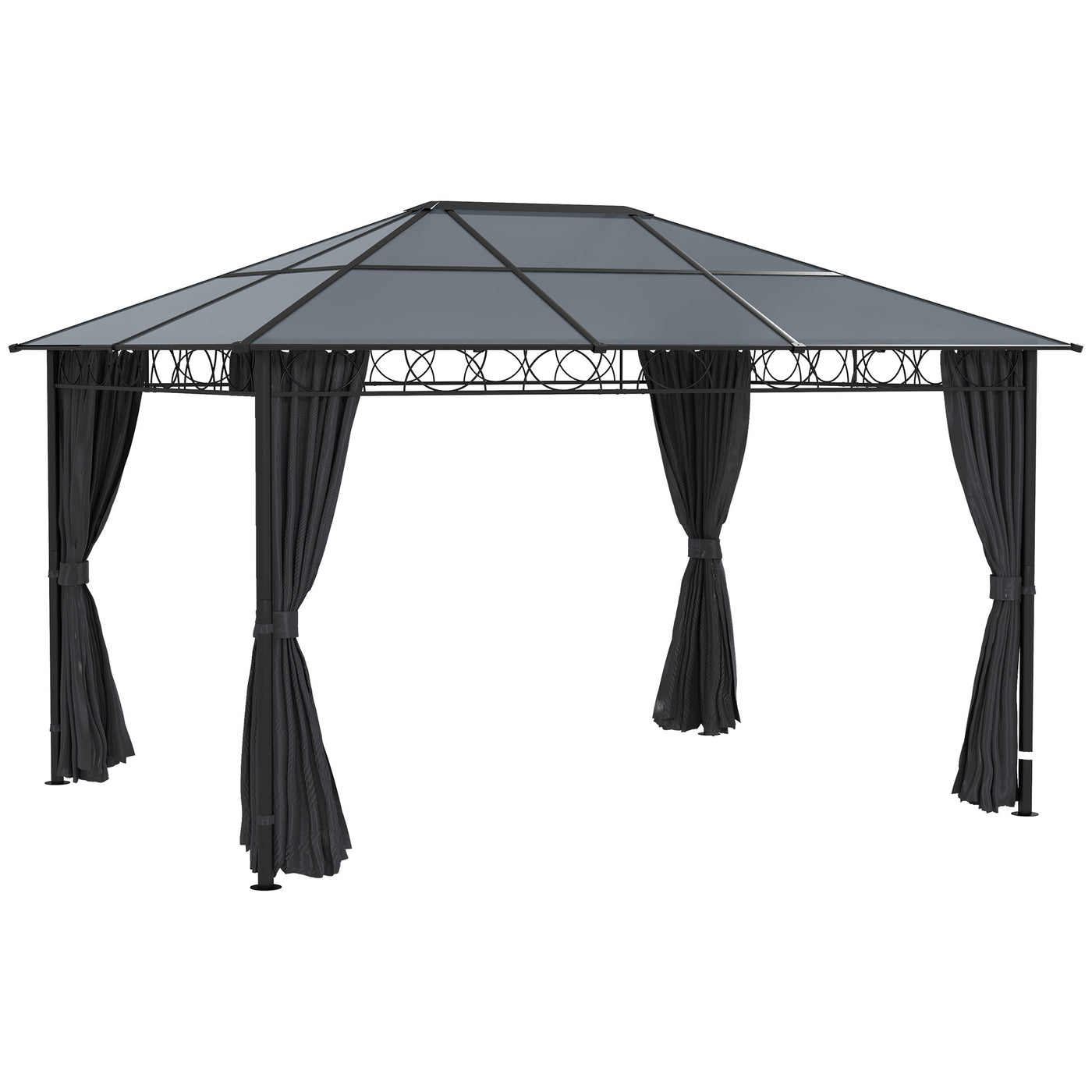 Outsunny Hardtop Gazebo Garden Pavilion with UV Resistant Polycarbonate Roof, Curtains, Steel & Aluminium Frame, 3 x 4m, Grey - Grey