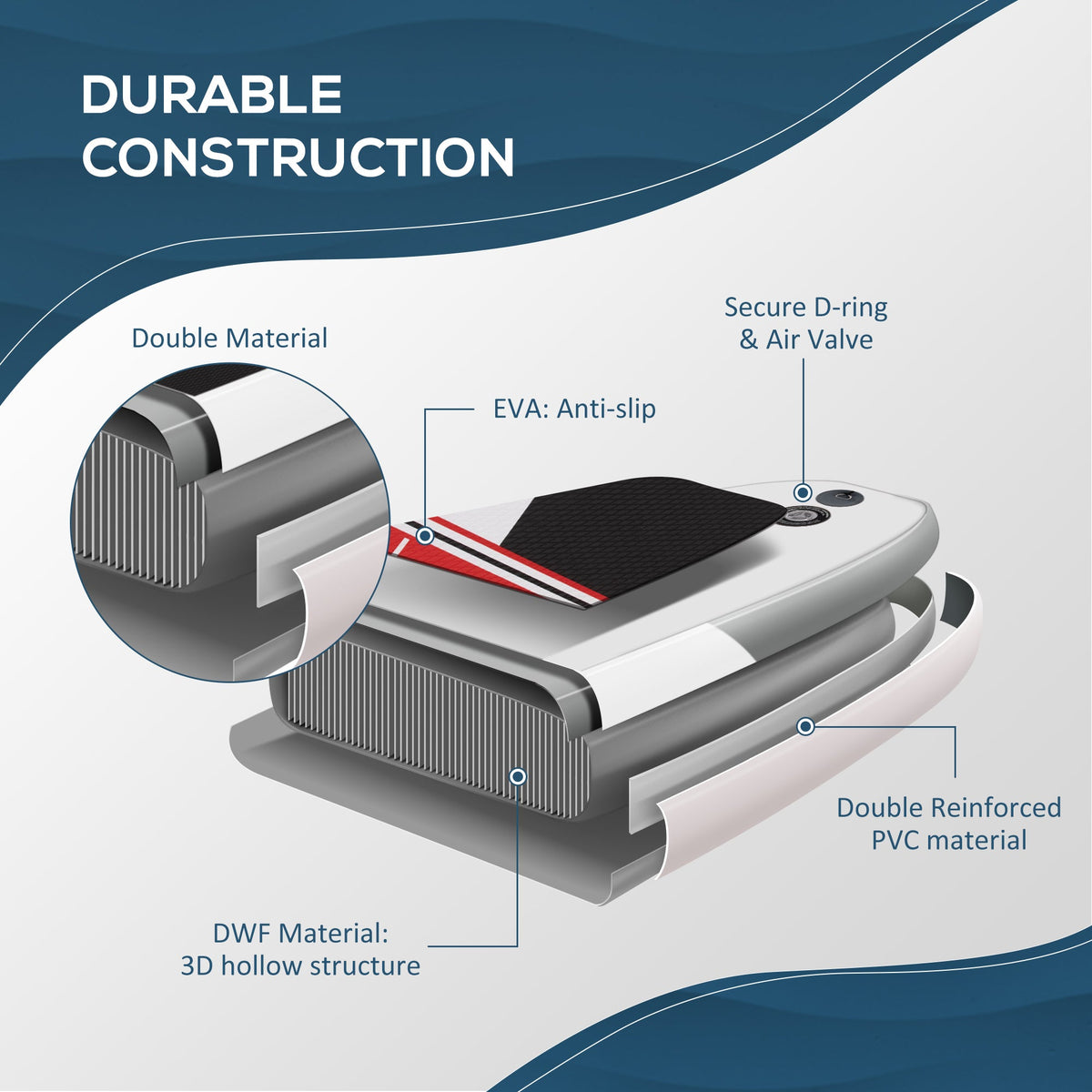 Outsunny Inflatable Stand Up Paddle Board, 10' x 30" x 6", Non-Slip SUP, with ISUP Accessories, Hand Pump, 3 Fins, Adj Paddle for Youth Adult Beginners/Experts - White - White