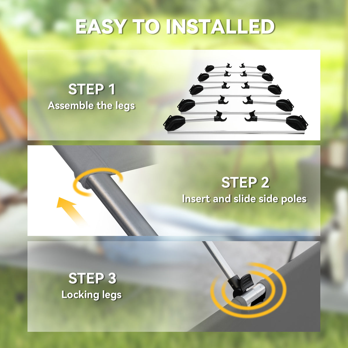 Sleeping when camping is never the great experience. Let's put an end to this, with the help of this Outsunny camping travel cot. A fully buildable design - comes with legs, side poles and top fabric - set up and take down, put in the bag and take with you wherever you want; makes being comfortable on camping trips ever so easy. The top fabric holds your body comfortably, the legs elevate you so you don't have to touch the ground.