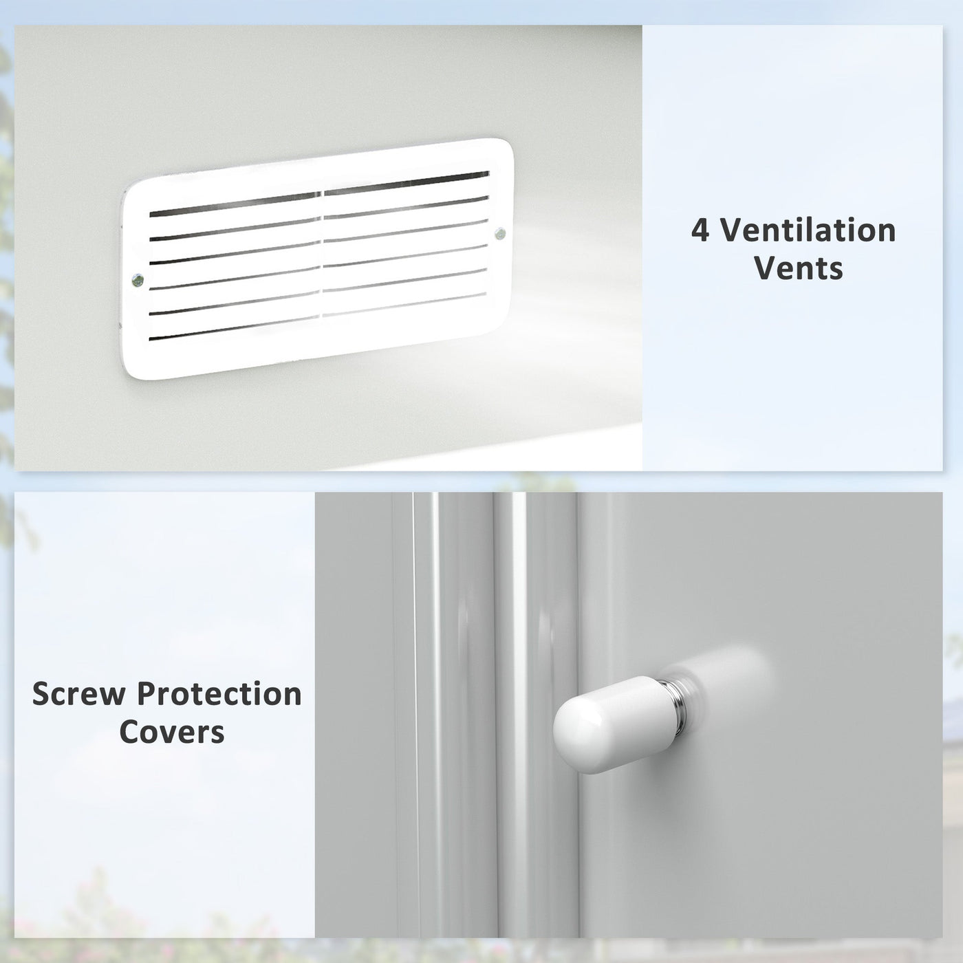 The Outsunny metal storage shed is the ultimate solution for safeguarding your valuable gear. Nestled in the spacious backyard of your city-edge home, this robust shed offers ample space to organize and protect your camping and cycling equipment. Crafted from galvanized steel, it ensures durability and security with lockable sliding doors. The four vents promote airflow, preventing moisture buildup, while the weather-resistant coating shields against the elements.