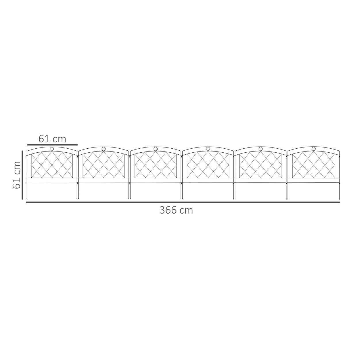 Outsunny Metal Decorative Outdoor Picket Fence Panels Set of 6, Black - Black
