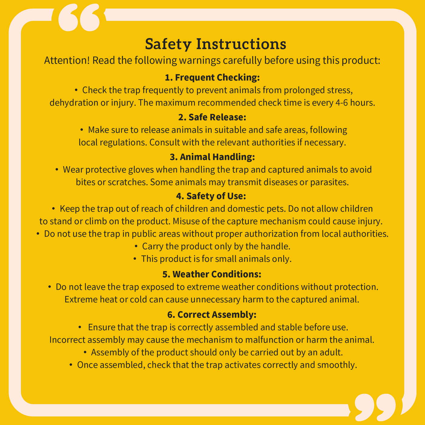 Tired of pests messing with your garden? The Outsunny animal trap has your back. It safely catches rats, mice and other small critters – no harm done. Built from solid, weather-resistant steel, it's great for outdoor use. Just place it where animals roam, add bait and let it do the work. When triggered, it closes gently but firmly. No more ruined plants or chewed-up crops – just peace of mind, finally.