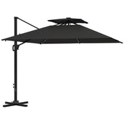 Fitted with solar-powered LED lights, this Outsunny parasol emits a warm white glow - still relax outdoors as the sun sets. The UPF 50+ canopy provides excellent sun protection, while the tiltable design and 360° swivel keep you cool and protected from every angle. Plus, the long strap secures the canopy for easy storage. Cross base included, weights are required.