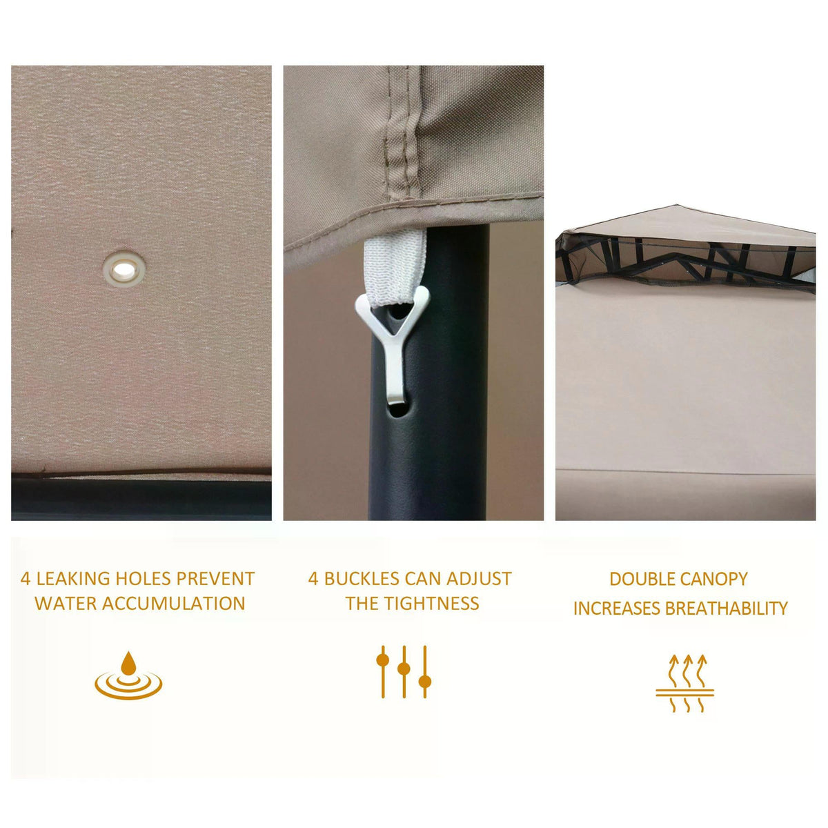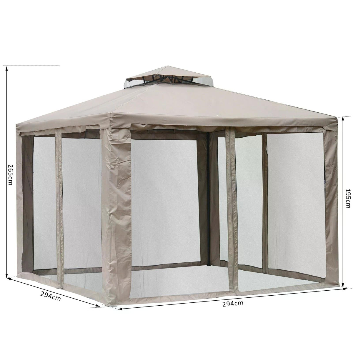 The stylish metal gazebo tent by Outsunny will turn your yard into a sophisticated and functional focal point with the stylish appearance and considerate design. The canopy top provides a perfect protection, blocking the sun's harmful UV rays while allowing sunlight to shine through. Enclosed netting provide full protection to your outdoor livings. The solid metal construction and weather resistant polyester fabric of this beautiful gazebo party tent will ensure you and your guests can enjoy this cozy space for years to come. You and your guests are free to relax and rest under the cool shaded canopy cover. Life is meant to be enjoyed outdoors. Get out and get Outsunny!.