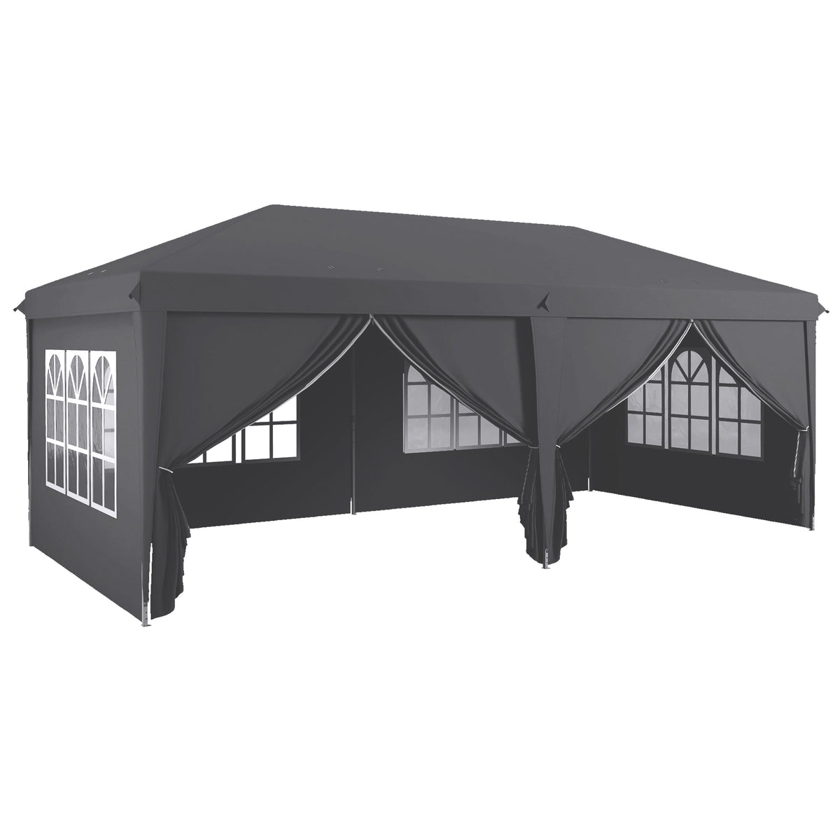Outsunny Outsunny 3 x 6 m Garden Pop Up Gazebo, Wedding Party Tent Marquee, Water Resistant Awning Canopy with Sidewalls, Windows, Carry Bag, Grey - Grey