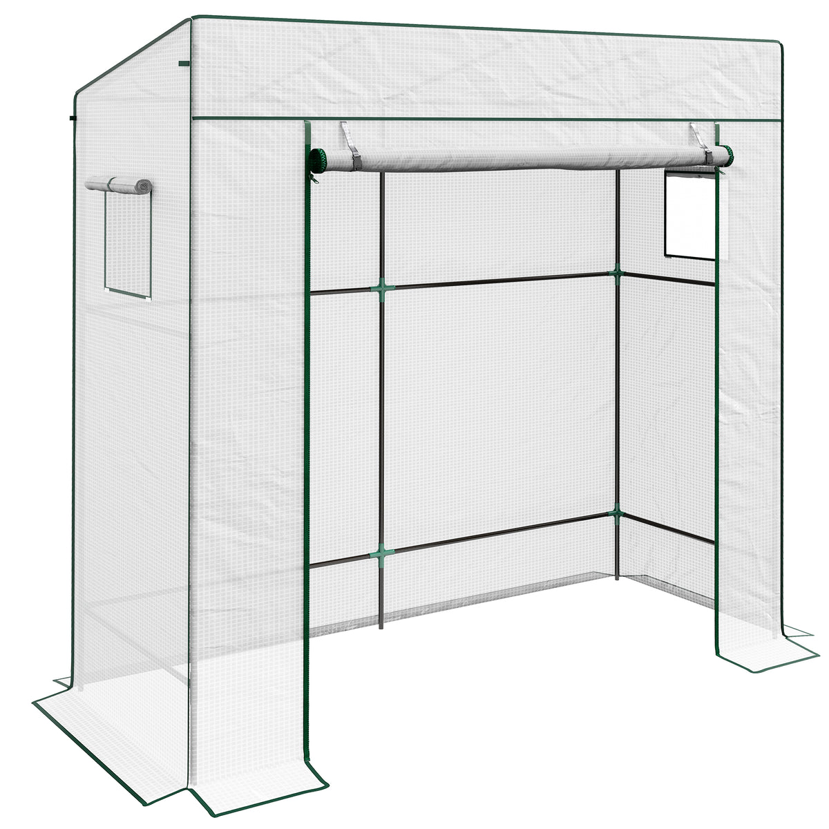 Grow a moderate variety of plants and vegetables with this 77 x 196cm Outsunny greenhouse. The plastic cover creates safe shelter inside, complete with a zipped door to access. Two windows bring in fresh air, when needed.