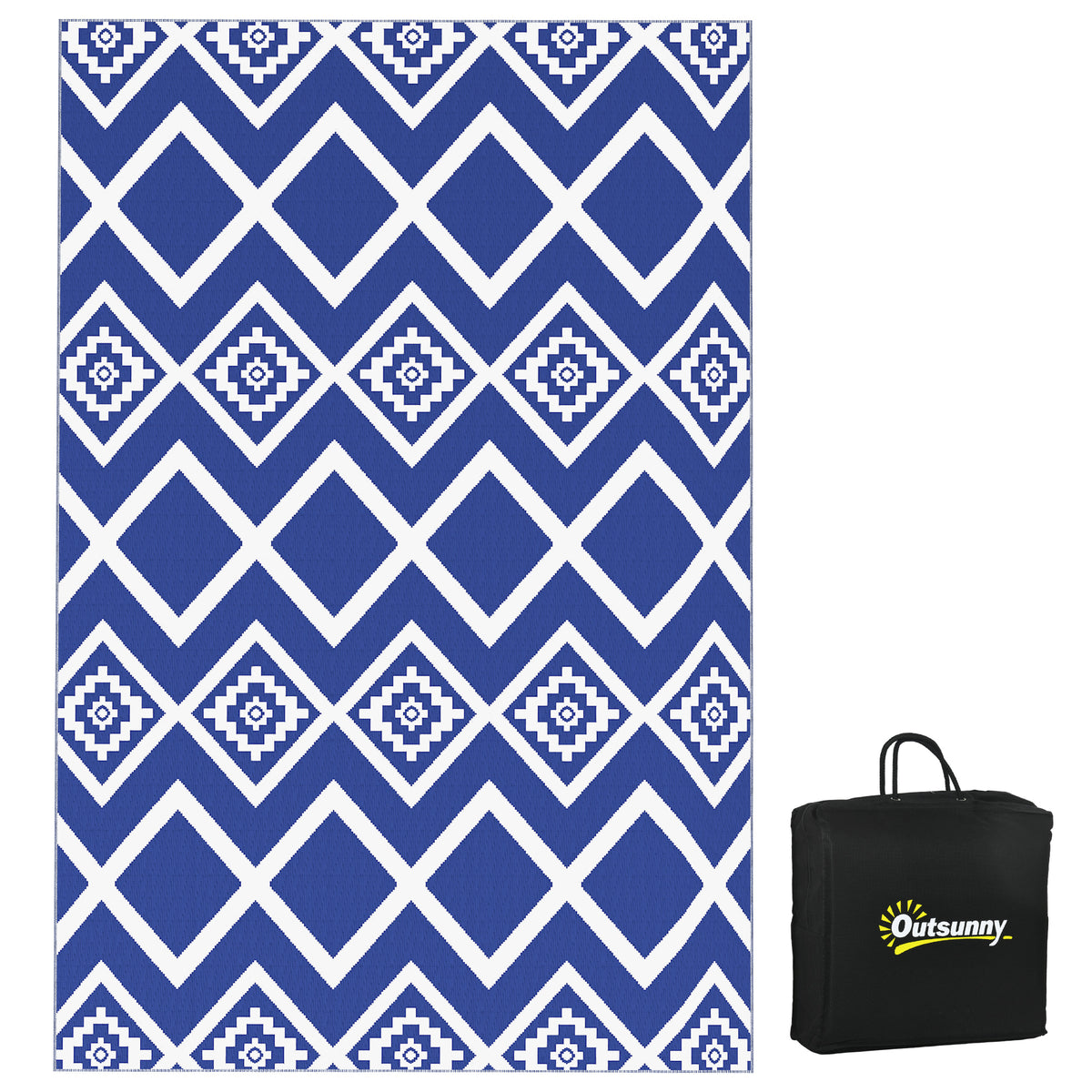 Outsunny Plastic Straw Reversible RV Outdoor Rug with Carry Bag, 182 x 274cm, Blue and White - Blue, White