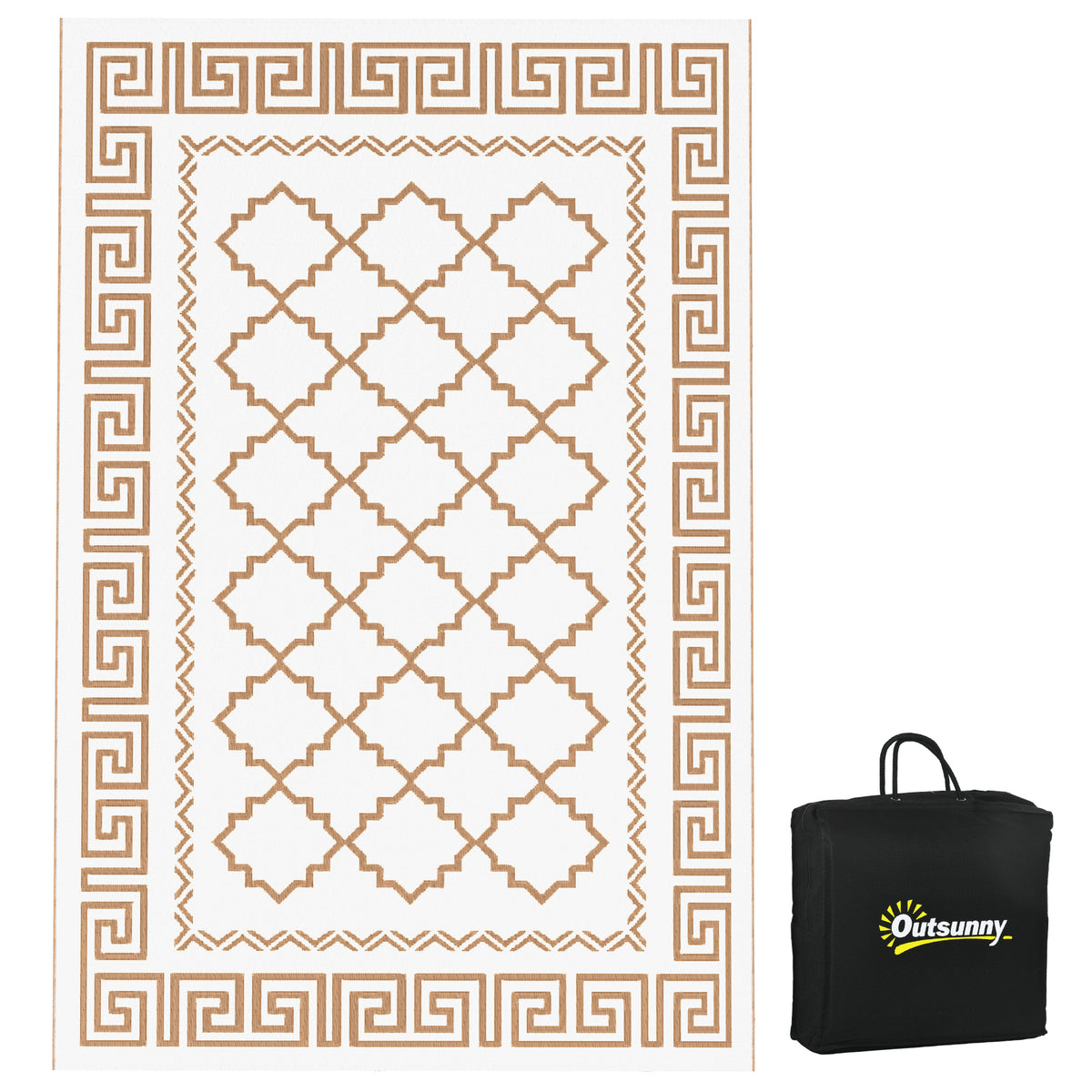 Outsunny Plastic Straw Reversible RV Outdoor Rug with Carry Bag, 182 x 274cm, Brown and Cream - Brown, Cream