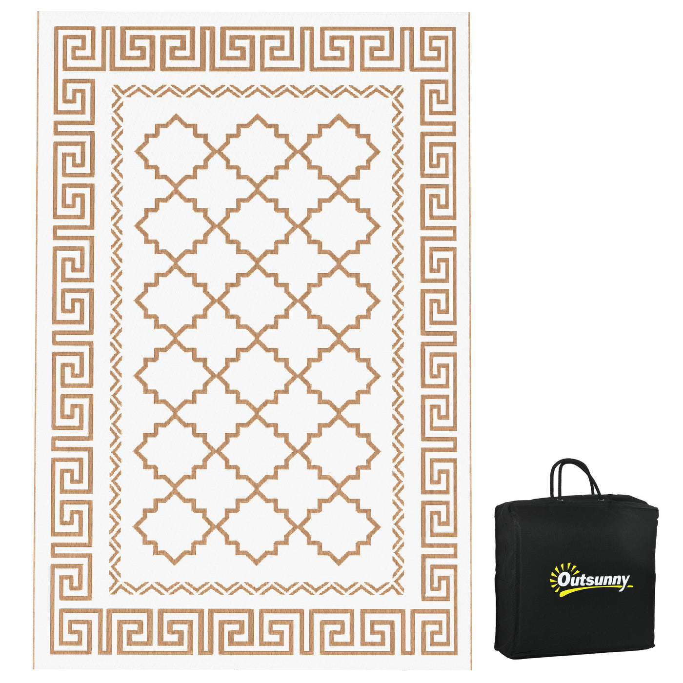 Camp on carpet with Outsunny. This porch rug is designed to handle dirt. Outdoor-ready, our rug really cleans up fast; sweep it, spray it, wipe it, or wave it; its powerful polypropylene fibers stay dry and don't saturate. Keep a plastic outdoor rug in the camper, RV, or car; it's excellent for camping, beach trips, patio picnics, or anywhere outside. The colour is reversible, meaning you can flip our plastic rug over to have a fresh side or a fresh style. Upholster the outdoors with Outsunny.