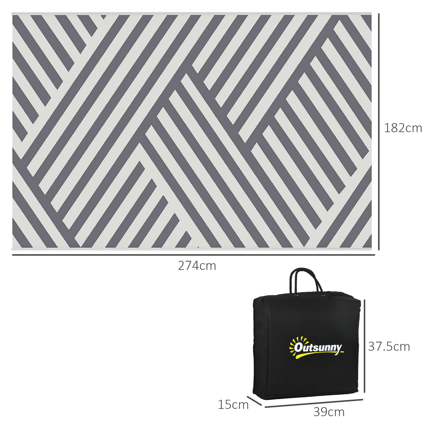 Outsunny Plastic Straw Reversible RV Outdoor Rug with Carry Bag, 182 x 274cm, Grey and Cream - Grey, Cream