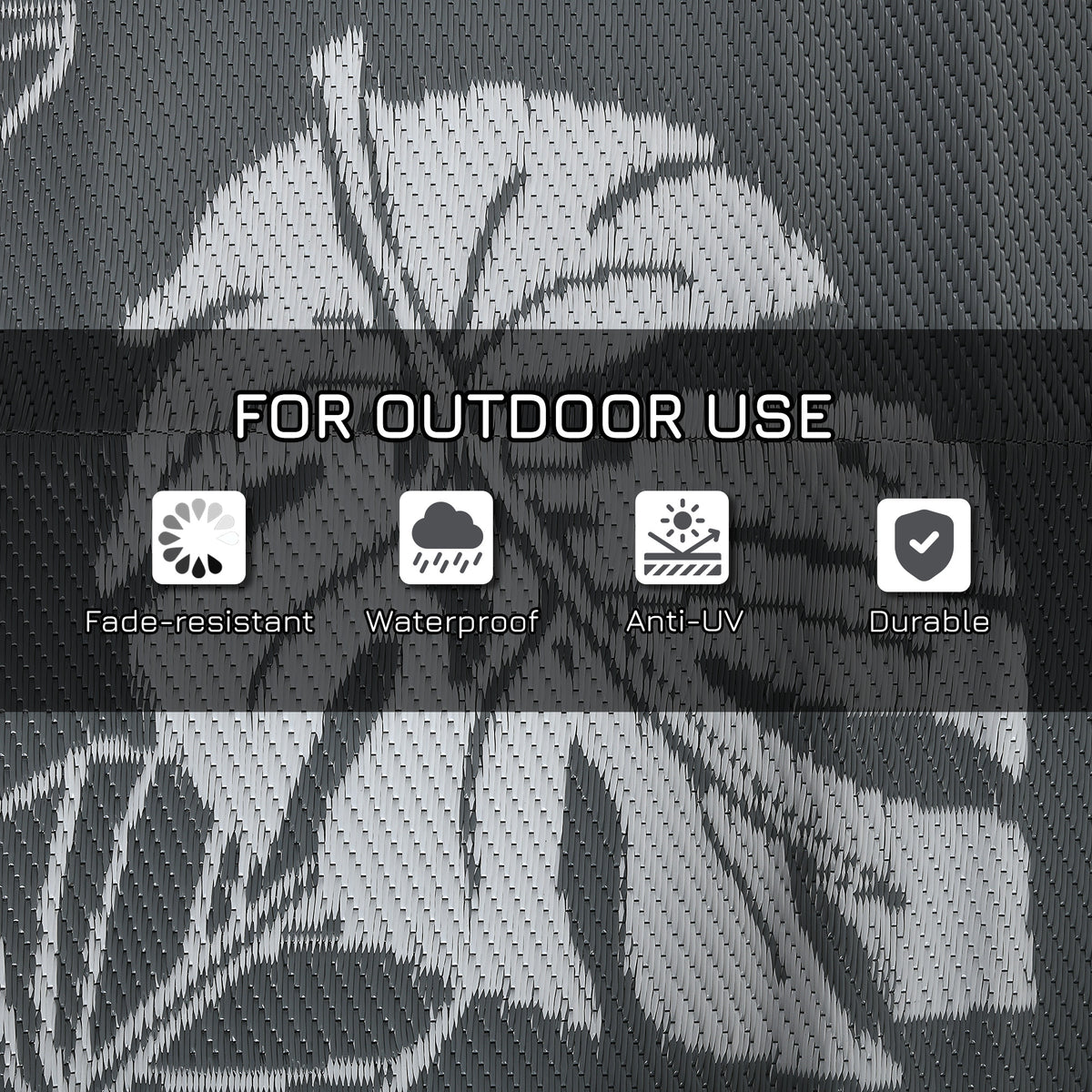 Outsunny Plastic Straw Reversible RV Outdoor Rug with Carry Bag, 182 x 274cm, Grey and White - Grey