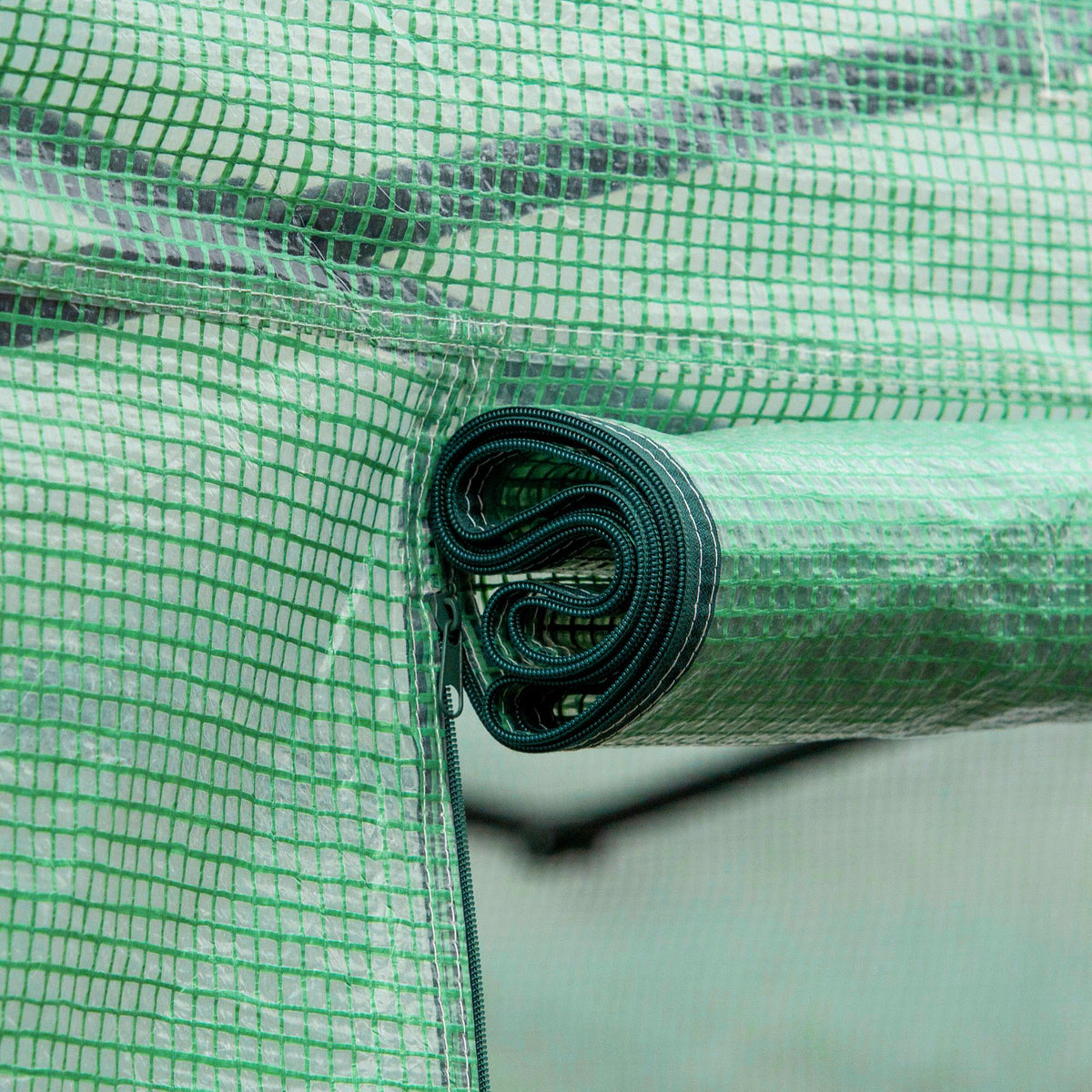 Outsunny Polytunnel Greenhouse Walk-in Grow House Tent with Roll-up Sidewalls, Zipped Door and 6 Windows, 3x3x2m Green - Green
