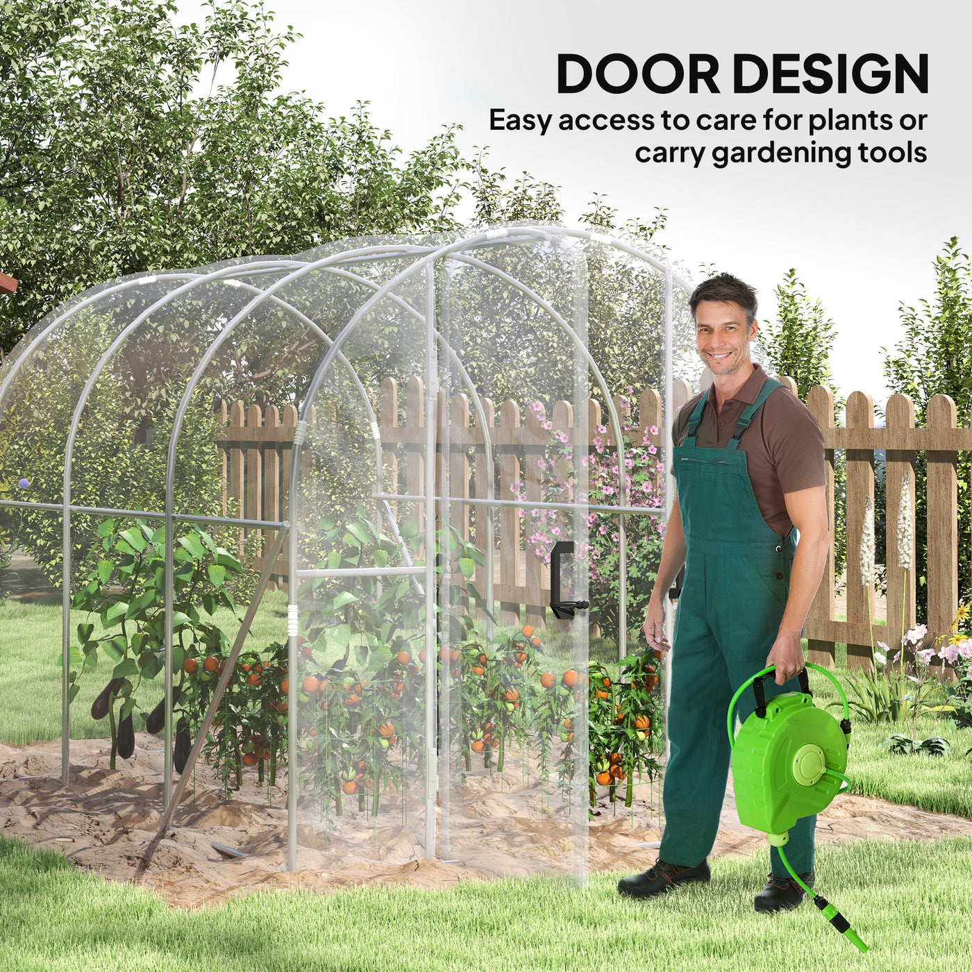 Grow a wealth of plants and more with this 2.95 x 1.95m polytunnel greenhouse. With its open inside, how you set it up inside is completely up to you. A galvanised steel structure for a strong standing structure, with a plastic cover to create safe shelter for inside plants - shield them from rain whilst retaining heat inside. Complete with an easy-open hinged door.
