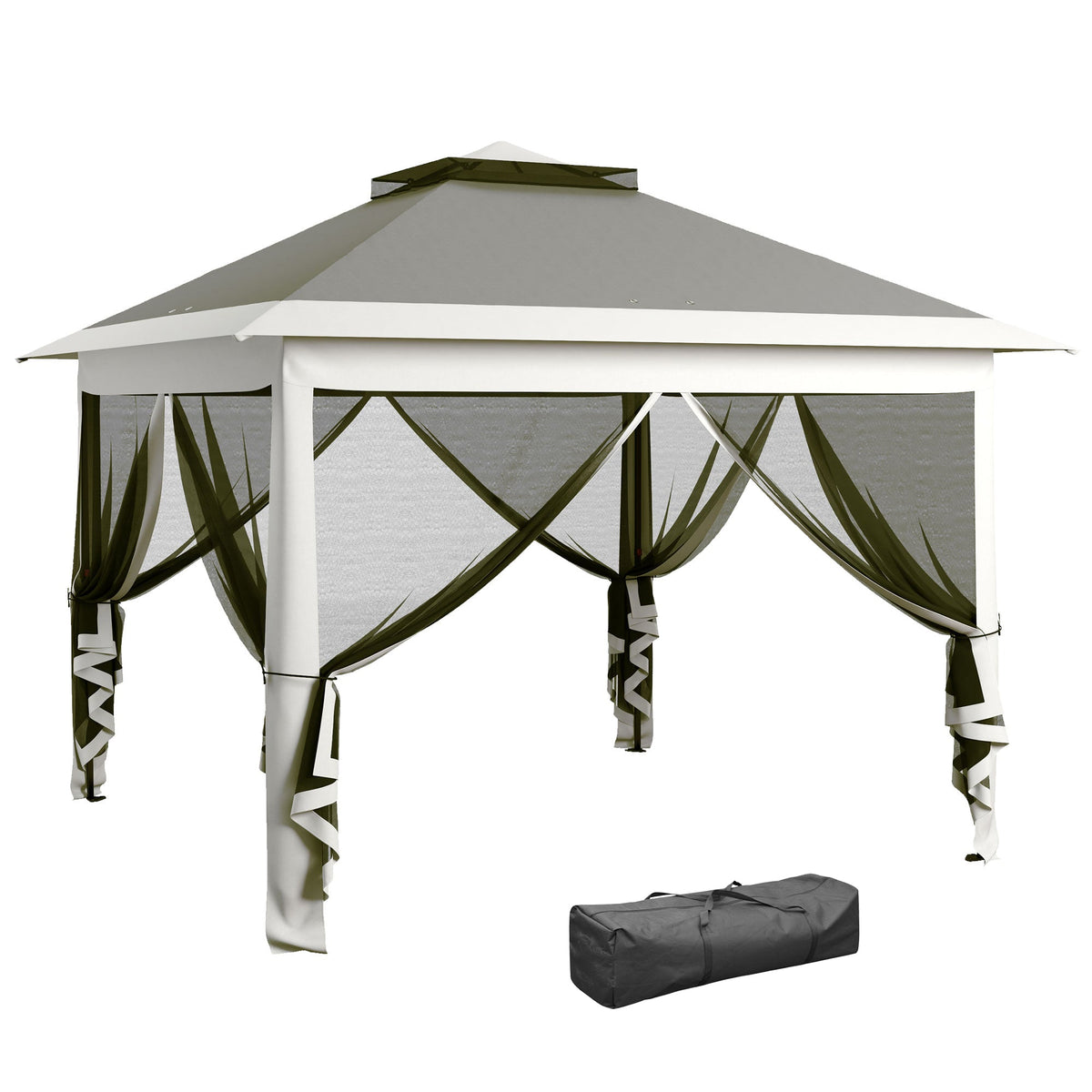 Outsunny Pop Up Canopy Tent with Double Roof, Zipped Mesh Sidewalls, Carrying Bag, Height Adjustable for Patio Garden, Dark Grey - Dark Grey