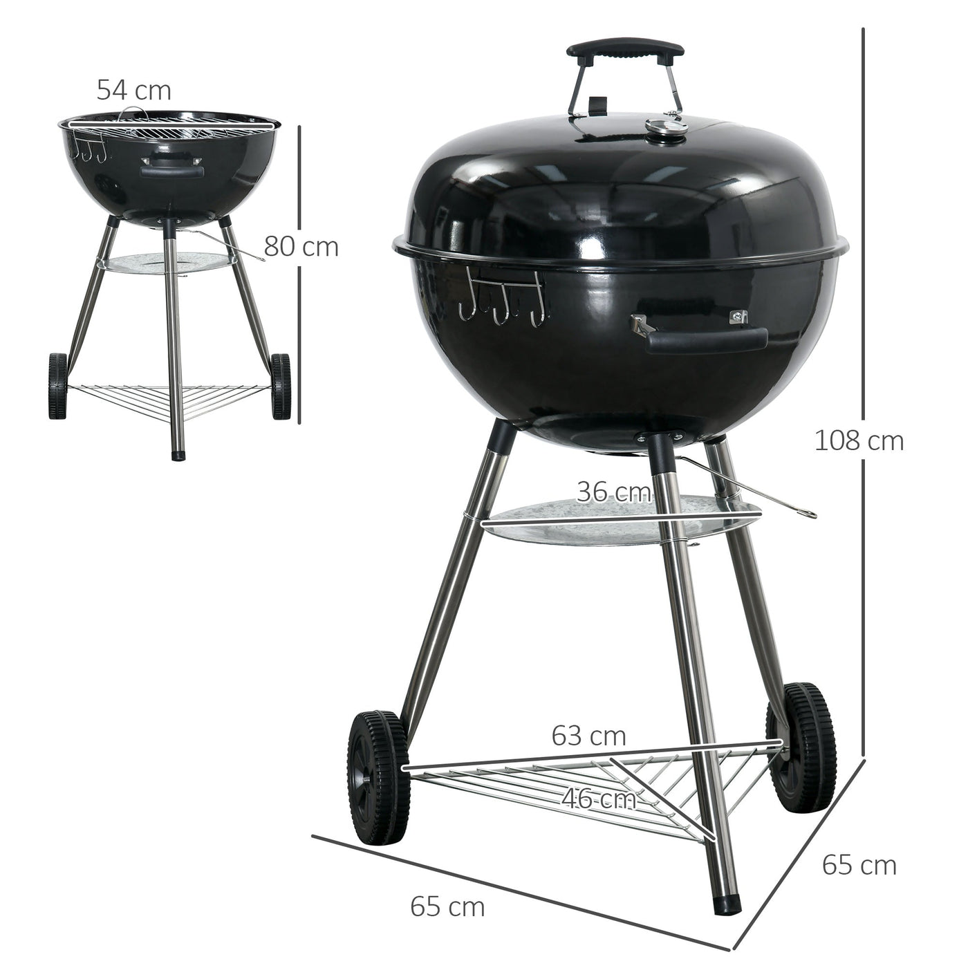 Bring your garden alive in the summer with this portable bbq from Outsunny. Made from solid metal for durability for years to come, the lid and the basin are covered with porcelain enamel to provide even heat resistance up to 600℃, allowing you to cook food quickly, with air vents for constant heat control without lifting the lid. Three stainless steel legs provide strength and stability, with two wheels to move the unit around easily if you wish.