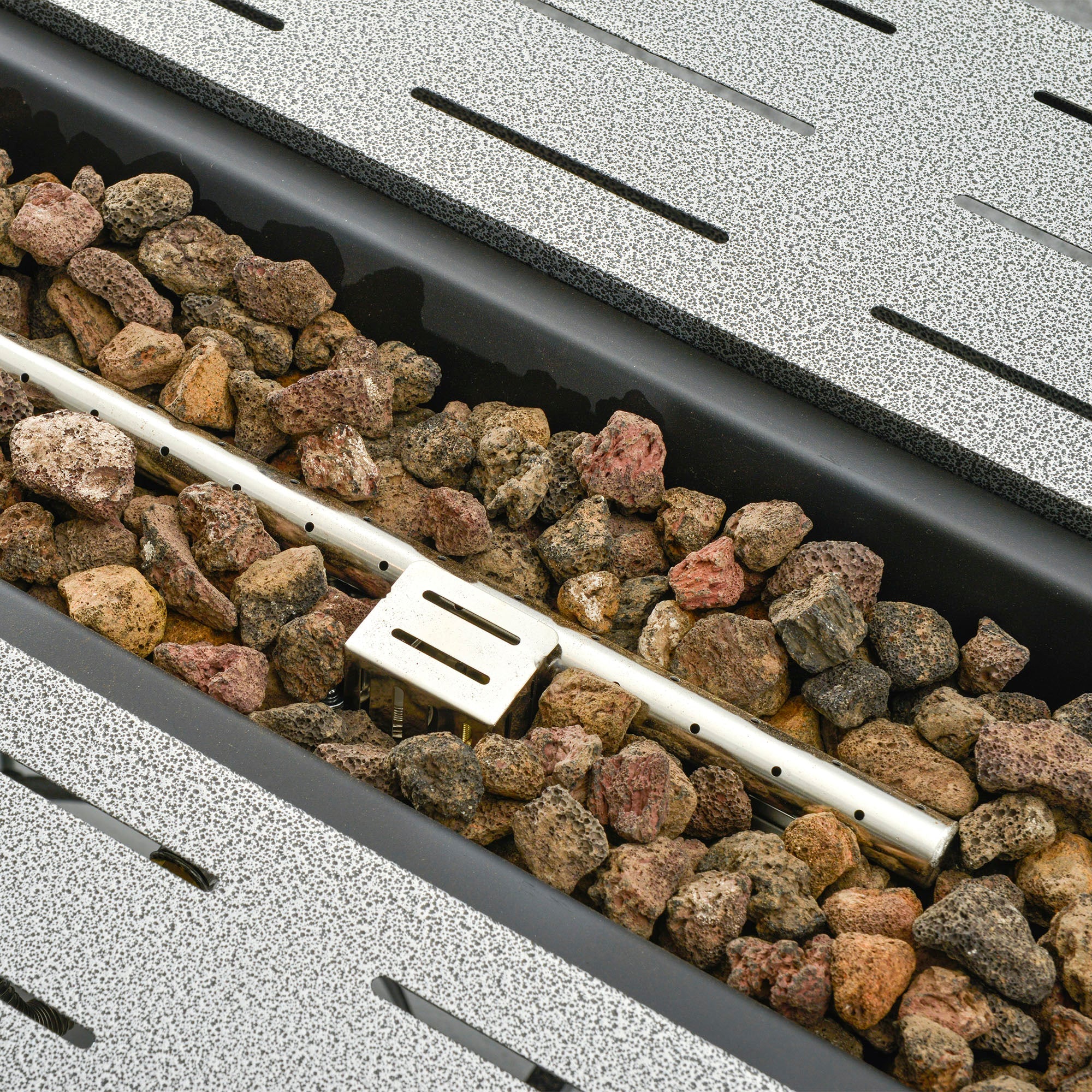 Outsunny Propane Gas Fire Pit Table, 50000BTU Smokeless Firepit Outdoor Patio Heater with Protective Cover, Lava Rocks and Lid, 107cm x 51cm x 63cm, Silver Grey - Silver Grey