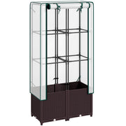 Outsunny Raised Garden Bed with Trellis, Plastic Planter Box with PE Cover, Drainage Holes, Drain Plugs and Water Reservoirs for Climbing Plants, Vegetables, Flowers, 80 x 40 x 140 cm - Brown