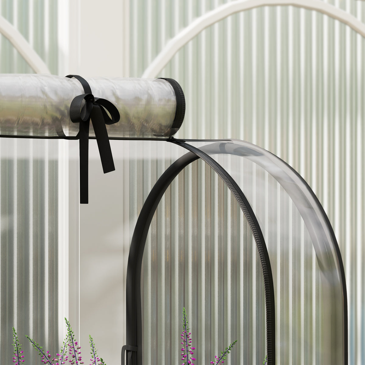 Outsunny Raised Planter with Greenhouse Cover, Mobile Elevated Garden Bed with Wheels and Bottom Shelf for Vegetables, Green - Green